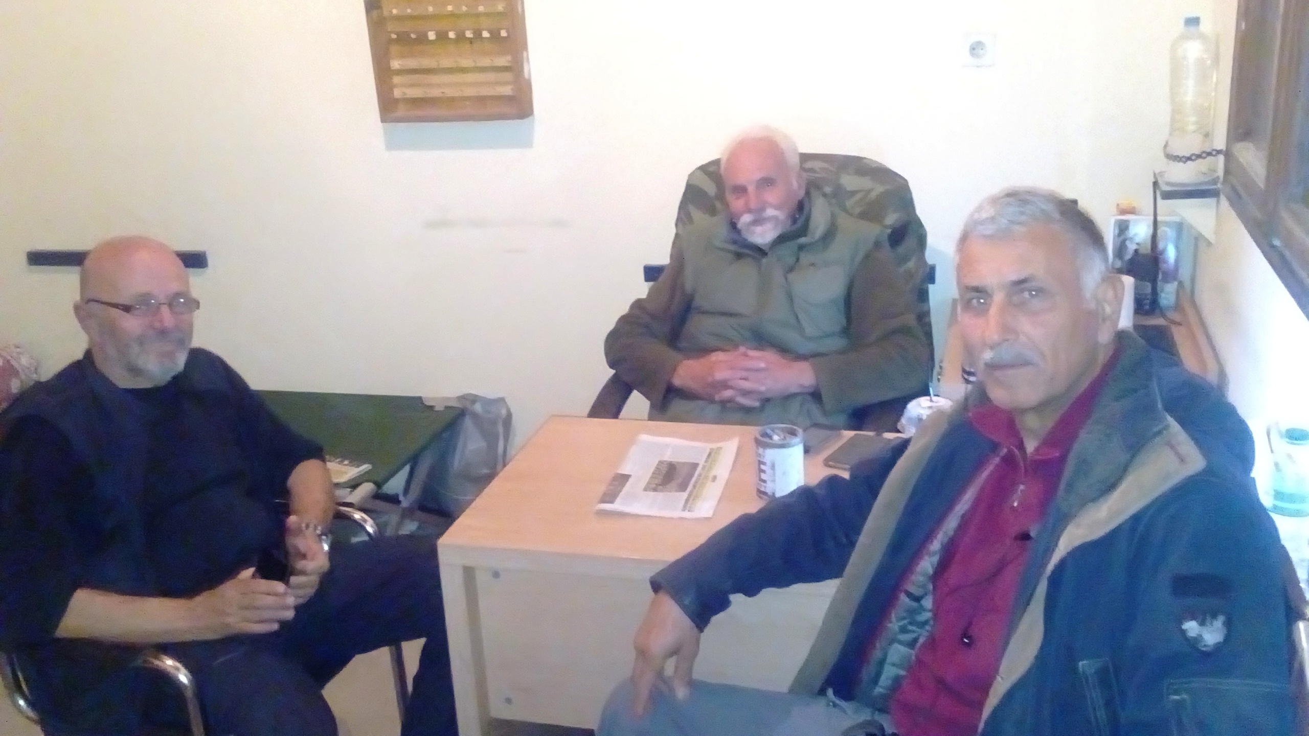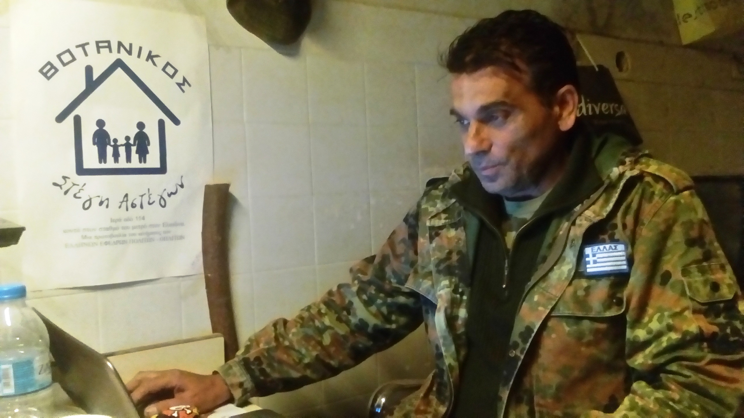 Ο Χρήστος Αθανασίου μας συστήνεται ως εκπρόσωπος επικοινωνίας του Κινήματος Ελλήνων Εφέδρων Πολιτών – Οπλιτών, ενός εκ των τριών ομάδων που από τον περασμένο Ιούλιο έχουν καταλάβει το χώρο που το ελληνικό δημόσιο προορίζει για την κατασκευή μουσουλμανικού τεμένους. Ο ίδιος υποστηρίζει ότι η παρουσία τους στην παλιά ναυτική βάση δεν είναι παράνομη. «Αφού ανήκει στο δήμο είναι και δικό μας, σε οτιδήποτε δημόσιο έχουμε μερίδιο, είμαστε εξ αδιαιρέτου ξέρεις στη Ελλάδα, έχουμε δικαίωμα να εκμεταλλευτούμε έναν χώρο για κοινωφελή σκοπό» λέει. «Το να φροντίζεις δηλαδή τους λαθρομετανάστες είναι λειτούργημα και να φροντίζεις τους Έλληνες είναι έγκλημα;» συμπληρώνει ο Τάκης, ένα ακόμα μέλος του κινήματος με στρατιωτική αμφίεση. Ρωτάμε για τον συνολικό αριθμό των μελών αλλά οι συνομιλητές μας δεν τον γνωρίζουν ακριβώς καθώς δεν έχει γίνει ακόμα κάποια καταγραφή. Ρωτάμε που είναι οι άστεγοι για να λάβουμε την ίδια απάντηση ότι δεν βρίσκονται μόνιμα εκεί, «φεύγουν, ξαναέρχονται, ένας θα έρθει ξανά τη Δευτέρα, είχε πάει στο χωριό του».