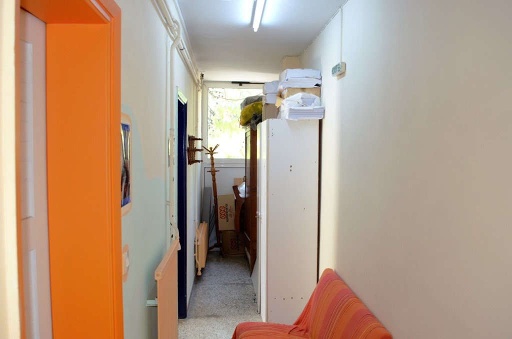 Η σκάλα που οδηγεί στον μικρό όροφο ο οποίος στεγάζει το ψυχιατρικό τμήμα παιδιών κι εφήβων του Ασκληπιείου Βούλας είναι στενή. Ανοίγοντας, όμως, την πόρτα του ιατρείου νομίζει κανείς ότι βρέθηκε μέσα σε κάποιο παλιό καράβι. Σε έναν διάδρομο πλάτους 80 εκατοστών, που επιπλέον έχει κατά μήκος του καθίσματα αναμονής, τραπεζάκια, λίγα παιχνίδια και πυροσβεστική φωλιά, πηγαινοέρχονται θεραπευτές κι επισκέπτες με την ελπίδα ότι δεν θα χρειαστεί να εκκενωθεί επειγόντως ο χώρος. Είναι ένας πολύ στριμωγμένος χώρος που έτσι κι αλλιώς θα έπρεπε να έχει εκκενωθεί – ως ακατάλληλος για την αποστολή του: την κάλυψη των αναγκών ολόκληρης της νότιας και νοτιοανατολικής Αττικής και τμήματος του Πειραιά.