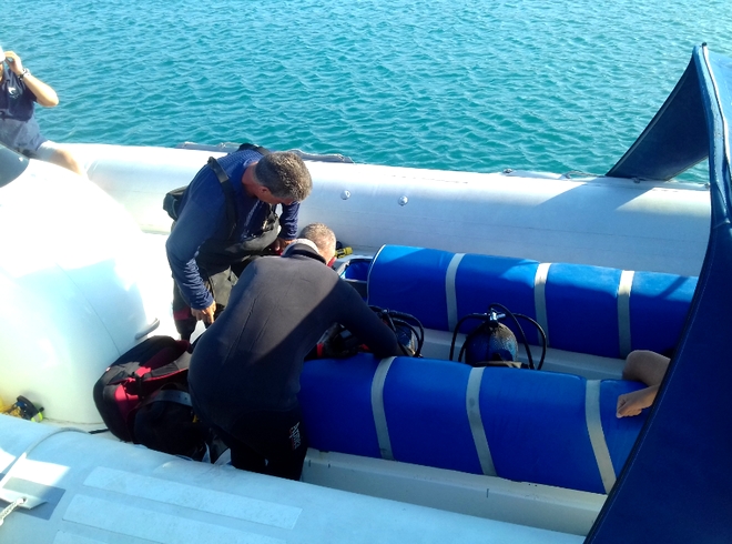 Παράλληλα, λίγο μετά τις 17.00 το απόγευμα του Σαββάτου, πραγματοποιείται νέος κύκλος από υποβρύχιες λήψεις από δύτες που κατέφθασαν από Ρόδο (ένα φουσκωτό με τέσσερις δύτες), προκειμένου να υπάρξει  σαφής εικόνα της ζημιάς. Προσωρινά τα πλοία που φθάνουν στο νησί προσεγγίζουν στο λιμάνι της Κεφάλου και από εκεί, οι ταξιδιώτες με ΚΤΕΛ μεταβαίνουν στην πόλη της Κω.