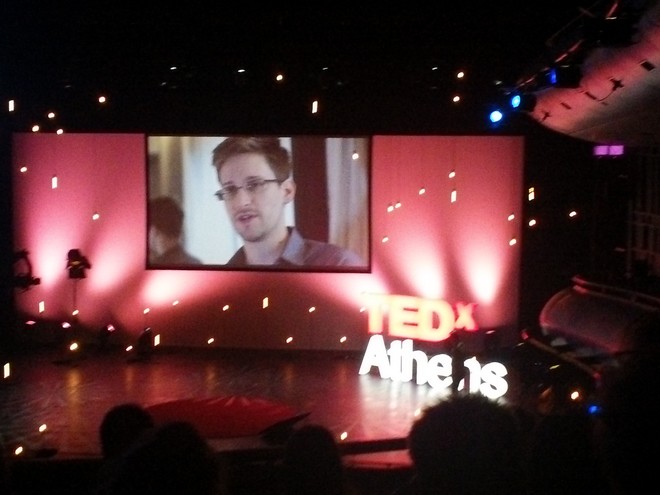 “Η ιστορία του Σνόουντεν θα φάνταζε υπερβολική μερικά χρόνια πριν. Όταν λάβαμε τα αρχεία του μας ζήτησαν να τα διαγράψουμε. Στην αρχή δεν το πιστεύαμε, ότι λάβαμε email από τον Έντουαρντ. Δεχθήκαμε πιέσεις όμως το περιεχόμενο είχε διαρρεύσει ήδη και σε άλλες πόλεις. Αυτό που πρέπει να σκεφτούμε και προκύπτει μέσα από την υπόθεση της NSA, είναι ότι μέσω της νέας τεχνολογίας μας κατασκοπεύουν κάθε μέρα, όλη μέρα. Τα iPhone είναι οι συσκευές που παρακολουθούνται περισσότερο. Οι άνθρωποι με iPhone είναι στην πραγματικότητα, ζόμπι. Οφείλουμε όλοι να πιέσουμε προς μια άλλη κατεύθυνση που θα θέσει στο επίκεντρο τον διάλογο για την ιδιωτικότητα και την εθνική ασφάλεια. Όπως και να έχει. Ότι κι αν γίνει. Μείνετε χαρούμενοι και να αγαπάτε ο ένας τον άλλο”.