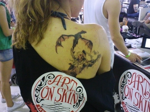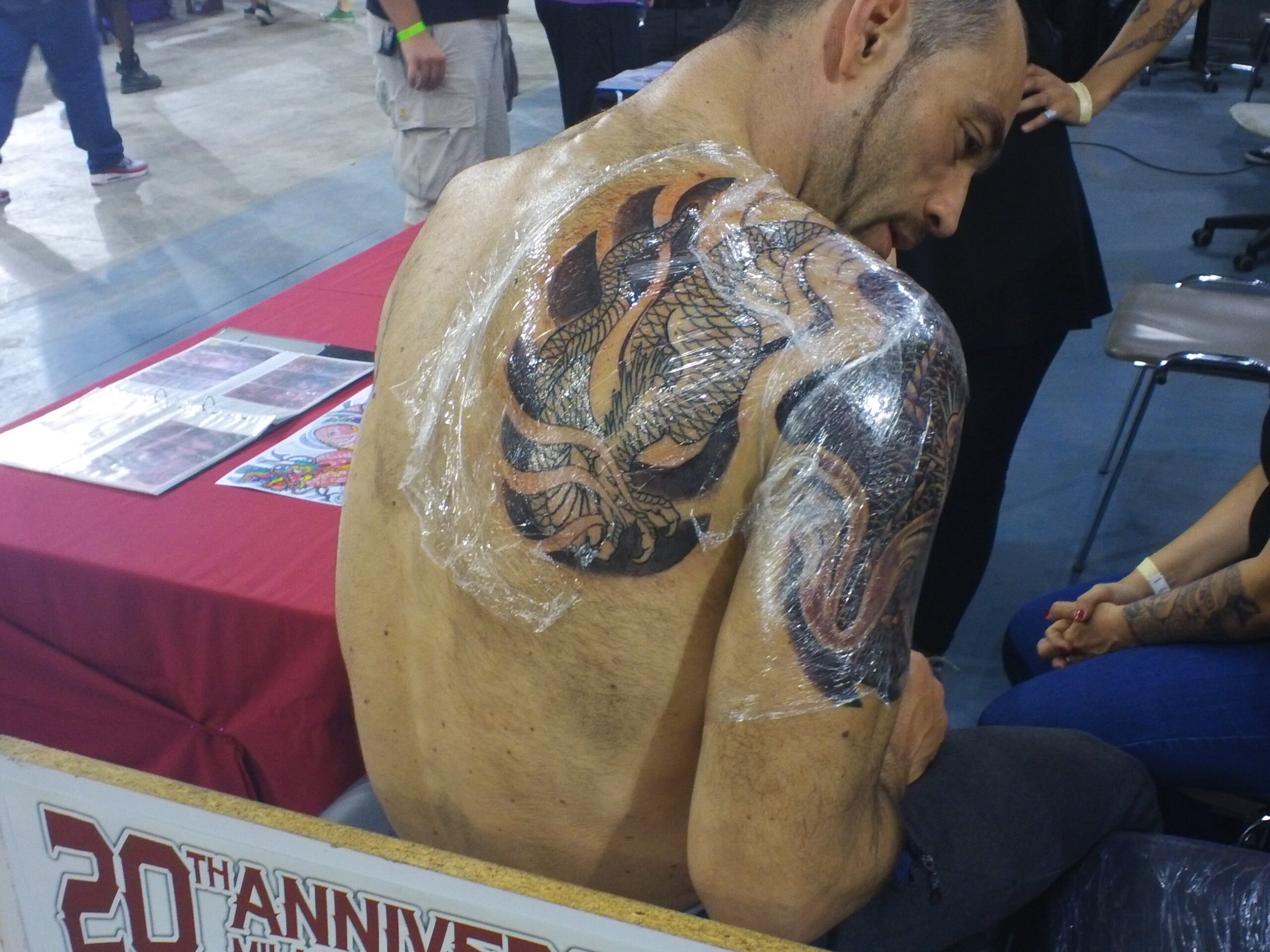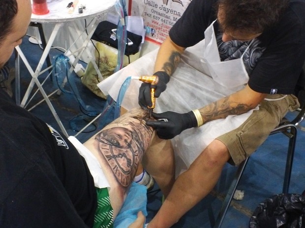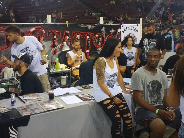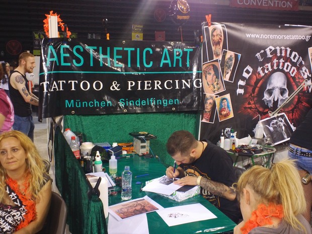 Μέσα στην έκθεση συναντήσαμε και το Γιάννη. Έλληνας ο οποίος όμως ζει και εργάζεται ως “τατουαζάς” στην Ελβετία στη Ζυρίχη. Χωρίς ίχνος υπερβολής, όταν τελείωσε το σχέδιο που χτύπαγε, τόσο όλοι οι παρευρισκόμενοι, όσο και άλλοι καλλιτέχνες, απλώς ξεκίνησαν να τον χειροκροτούν.