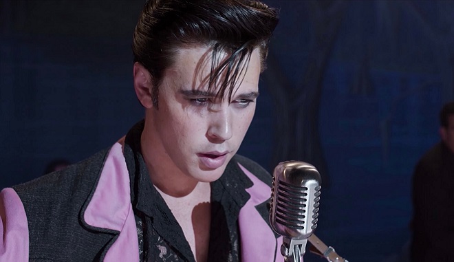 Σε όλη την πρώτη πράξη του φιλμ, όπου ξεδιπλώνεται η θεαματική καλλιτεχνική άνοδος του Έλβις, ο Λούρμαν χρησιμοποιεί πολλαπλά καρέ, οπτικά εφέ, γραφιστικά στοιχεία, ξέφρενες μουσικές που διαχέονται η μία στην άλλη, και φυσικά τους ηθοποιούς του (ο Τομ Χανκς ως Τομ Πάρκερ παίζει βασικά σαν μάπετ), προκειμένου να υπογραμμίσει, να βροντοφωνάξει, την ιστορία προέλευσης ενός ταλέντου που δεν χρειάζεται συστάσεις. Παρουσιάζει έναν βομβαρδισμό από τρικ, ώστε να μην προσέξουμε πόσο συνηθισμένη είναι η ιστορία που διηγείται– μήπως αυτή δεν είναι εξάλλου η ιστορία της ίδιας της showbiz;