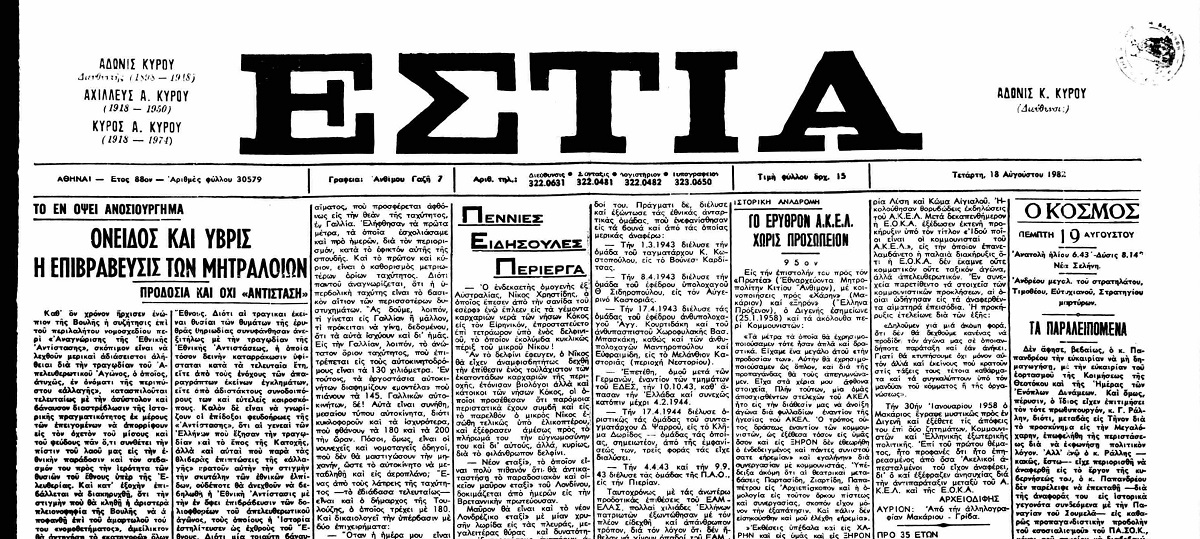 Στο Έθνος της 19ης Αυγούστου θα διαβάσουμε και το εξής ενδιαφέρον:
