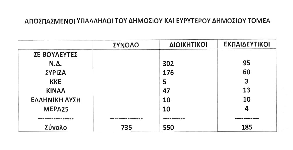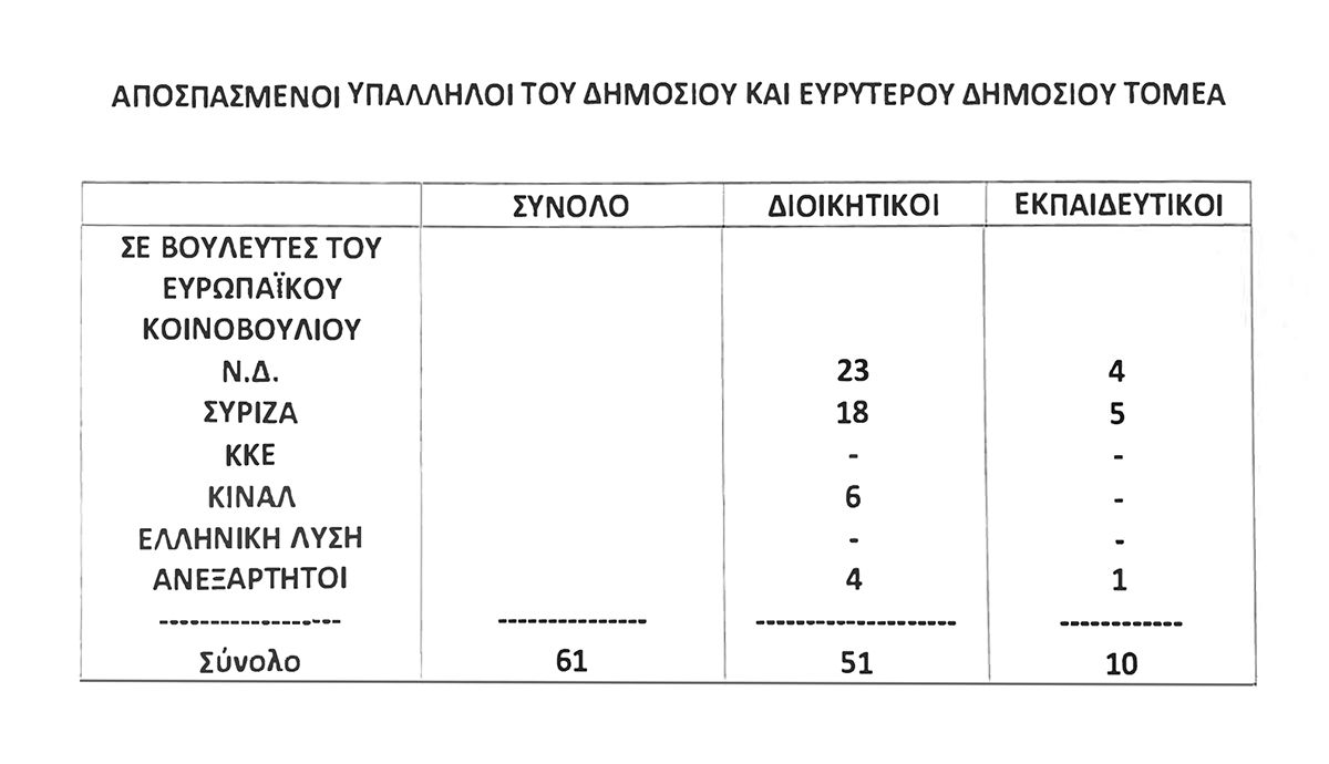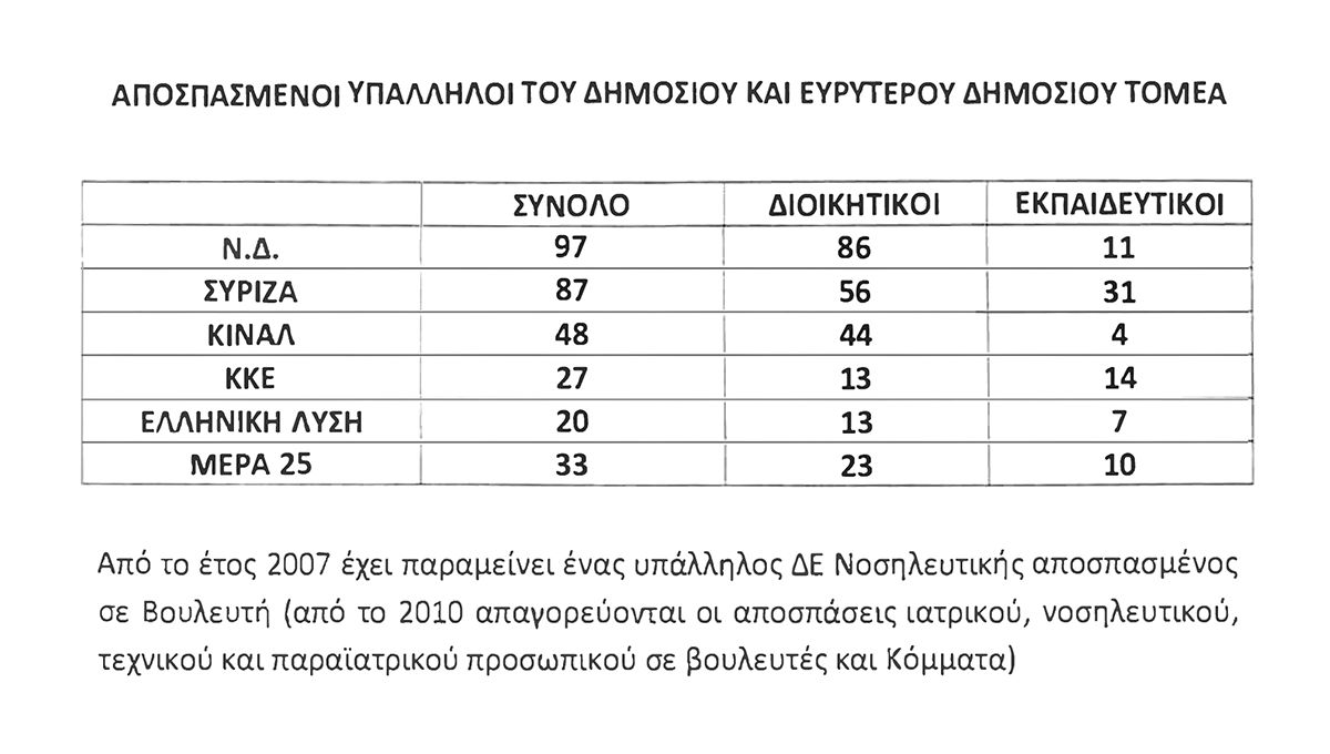 Οι αποσπασμένοι δημόσιοι υπάλληλοι σε βουλευτές, ευρωβουλευτές και κόμματα