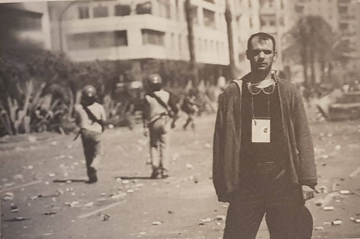 Θυμάμαι είχα τρεις αστυνομικούς γύρω μου, στο ένα χέρι είχα το κινητό γιατί μετέδιδα και με το άλλο κουνούσα σαν τρελός την κάρτα του δημοσιογράφου για να τη δουν. Όταν έφτασαν τα κλομπ από πάνω μου, κατάλαβαν ότι προφανώς είμαι δημοσιογράφος και δεν με χτύπησαν. Άλλοι συνάδελφοι όμως που ήταν δίπλα μου δεν γλίτωσαν. Ήταν μια κατάσταση πολύ σοκαριστική. Προχωρούσες στον δρόμο και έβλεπες παντού λίμνες αίματος. Ήταν το βράδυ που σκοτώθηκε ο Τζιουλιάνι.