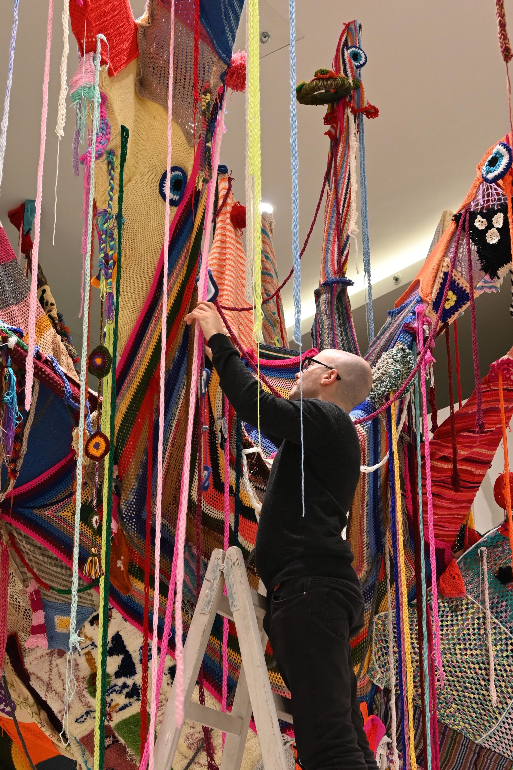 Τα κομμάτια που συλλέχθηκαν, μετά από ανοιχτή πρόσκληση του καλλιτέχνη, συνθέτουν το Δέντρο της πλατείας που εκτίθεται στο φουαγιέ του ΕΜΣΤ έως τις 30 Μαΐου.