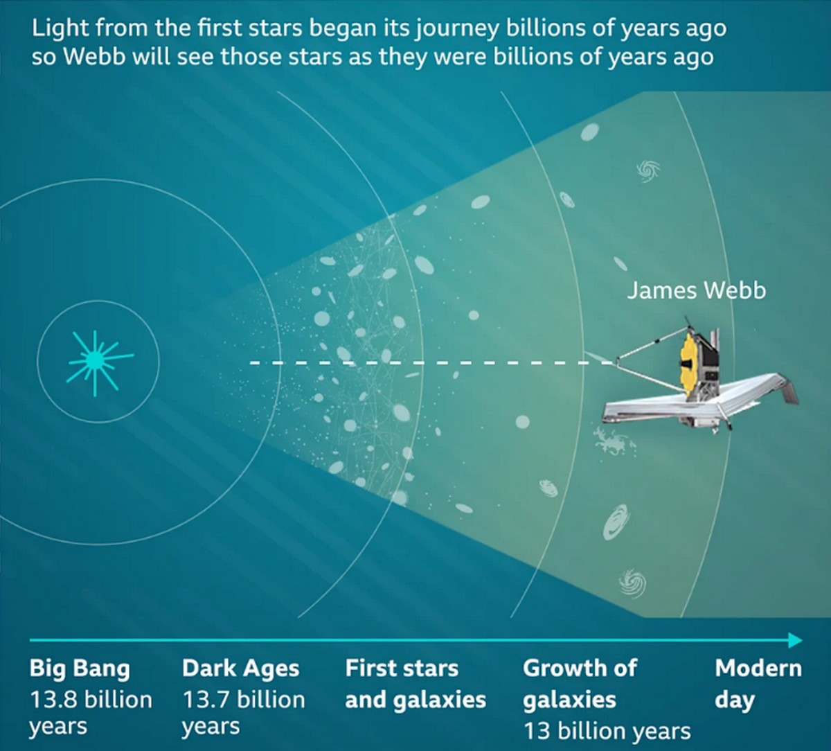 Η σημασία του hashtag είναι διττή. Αφενός ο προορισμός του James Webb είναι να ‘ξεδιπλώσει’ το μυστήριο της δημιουργίας του σύμπαντος. Αναμένεται να απαντήσει στο θεμελιώδες ερώτημα “από πού προερχόμαστε”, δηλαδή πώς ξεκίνησε το σύμπαν, πώς σχηματίστηκαν οι γαλαξίες, πώς εξελίχθηκαν, πώς προέκυψαν οι πλανήτες κλπ. To φως των αστεριών άρχισε το ταξίδι του πριν δισεκατομμύρια χρόνια. To James Webb θα δει αυτά τα αστέρια, όπως ήταν τότε -συνθήκη για την οποία οι αστρονόμοι δεν έχουν πολλές πληροφορίες.