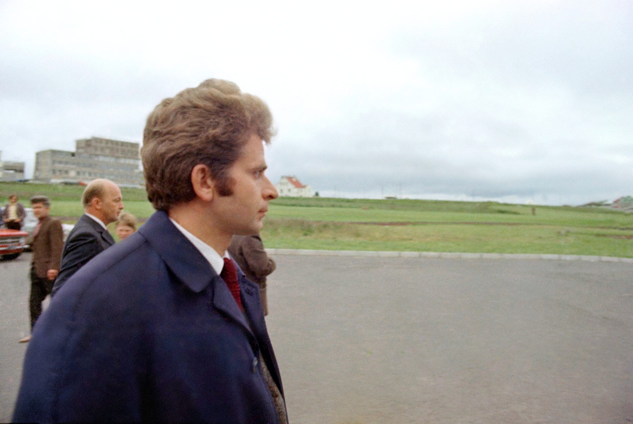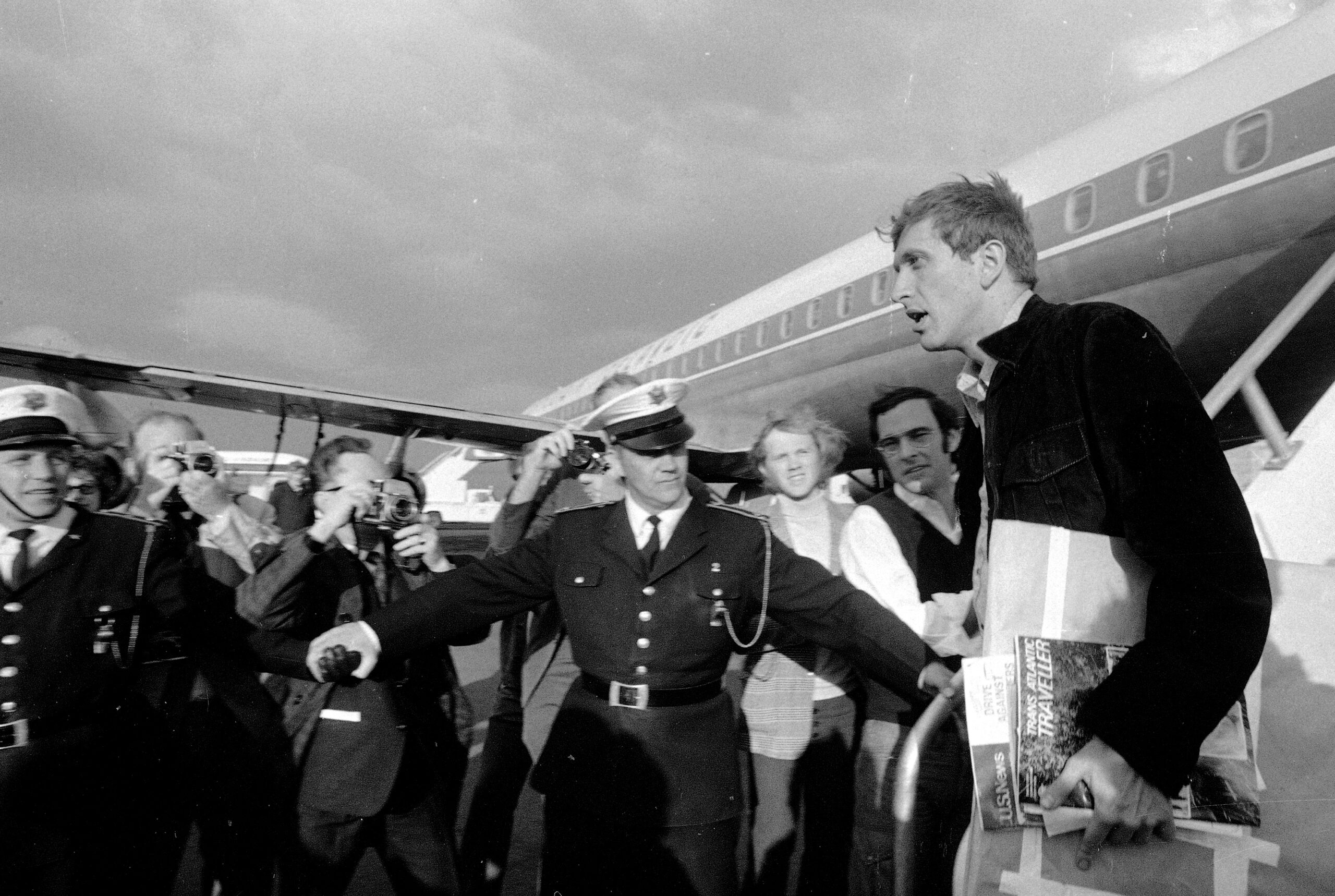 Ο Μπόμπι Φίσερ κατά την άφιξή του στο αεροδρόμιο Keflavik του Ρέικιαβικ (4/7/1972). ⓒ 1972 Associated Press