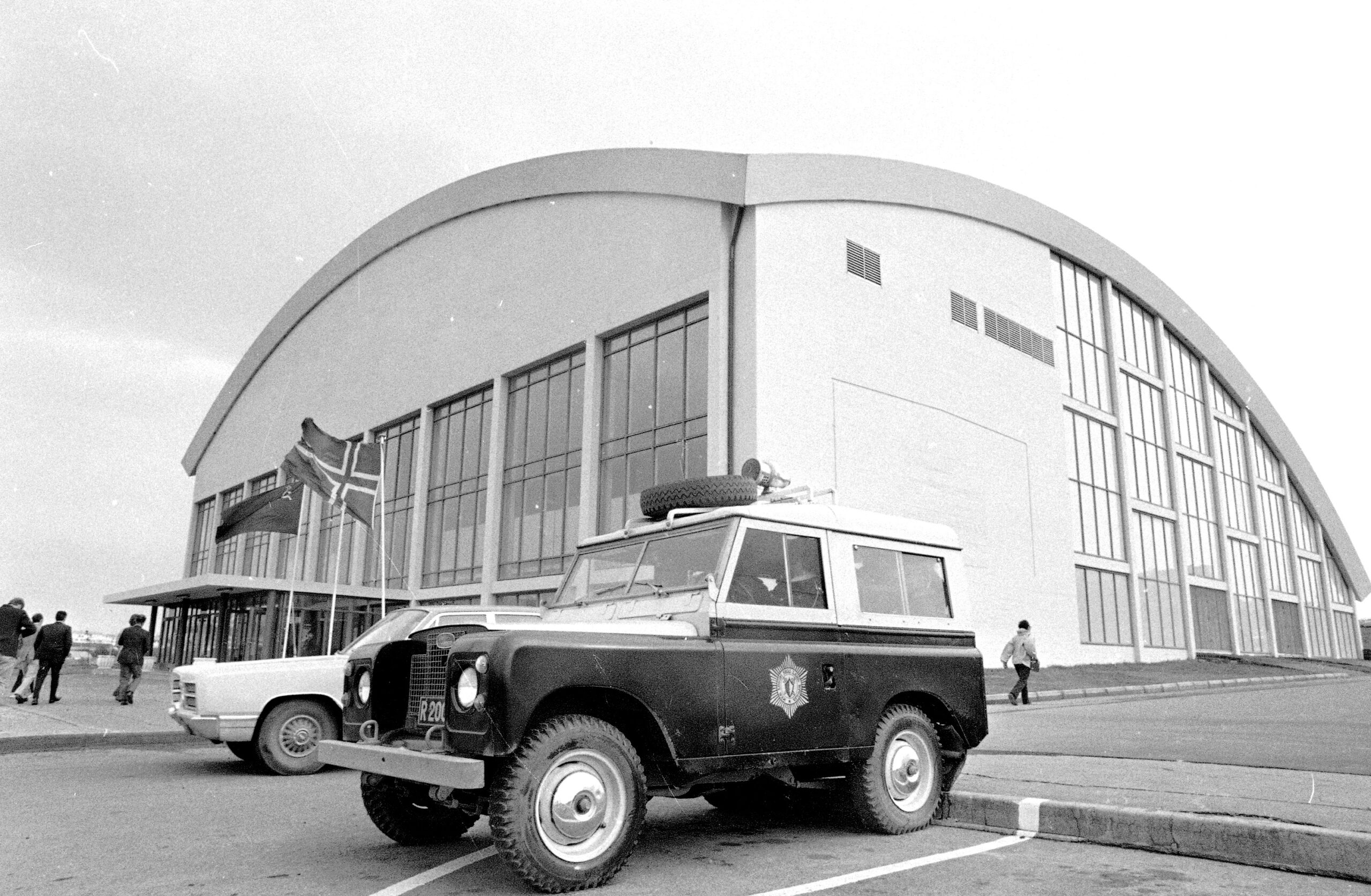 Το Laugardalsholl, κλειστό αθλητικό κέντρο πολλαπλών χρήσεων, στο Ρέικιαβικ, την πρωτεύουσα της Ισλανδίας, εκεί όπου διεξήχθη το παγκόσμιο πρωτάθλημα σκακιού το 1972. ⓒ 1972 J. Walter Green/Associated Press