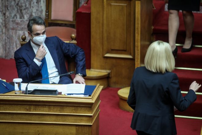 Η συζήτηση μάλιστα εντάθηκε όταν η Φωφη Γεννηματά ανταπάντησε: «Να σας θυμίσω ότι εγώ προσπαθούσα να σώσω θέσεις εργασίας και εσείς ψάχνατε να βρείτε ποιους θα απολύσετε» τονίζοντας ότι «είχαμε μεγάλη διαφορά ακόμα και όταν ήμασταν μέσα στην ίδια Κυβέρνηση. Είχαμε μεγάλες διαφορές και συγκρούσεις από τότε». Η φράση αυτή είχε προκαλέσει την έντονη αντίδραση του Κυριάκου Μητσοτάκη, ο οποίος δήλωσε πως «ναι, όντως. Θυμάμαι με τι δυναμισμό δεν προχωρήσατε όλο το μεταρρυθμιστικό έργο στο Υπουργείο Άμυνας -αλήθεια είναι αυτό- και πώς μπλοκάρατε πλήρως την εξυγίανση της αμυντικής βιομηχανίας, για να μας κληροδοτήσετε μια σειρά από προβλήματα τα οποία χρειάζεται τώρα να λύσουμε. Ναι όντως. Αλλά, εν πάση περιπτώσει, αν τα πιστεύατε αυτά, θα μπορούσατε κάλλιστα να μη συμμετείχατε στην κυβέρνηση αυτή».
