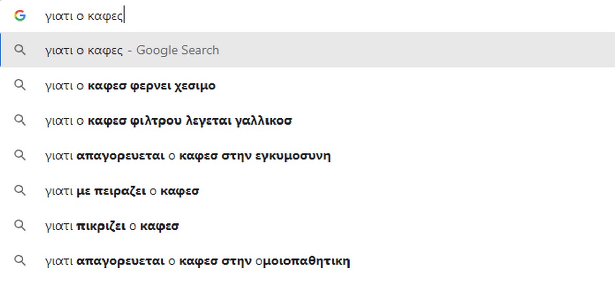 Ακολουθεί ο πίνακας με όσα ακολουθούν στην ερώτηση που αρχίζει ως “γιατί ο καφές”