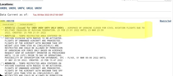 “Από το 2020 υπάρχουν ΝΟΤΑΜ για διάφορες περιοχές της Ουκρανίας, με τη δικαιολογία ότι “πρόκειται για μη αναγνωρισμένες περιοχές ως ουκρανικές, από τους Ρώσους”. Οι Ουκρανοί ειδοποιούν πως δεν δέχονται να πετούν αεροσκάφη, βάσει των οδηγιών που έχουν λάβει από Ρώσους και ότι πρέπει να ακολουθούν τις δικές τους.