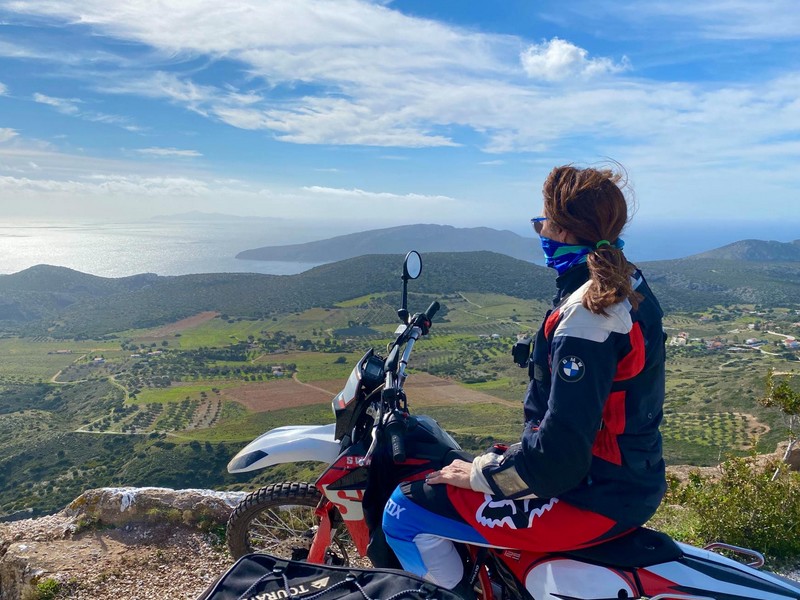 Εδώ και πάνω από μία δεκαετία, πάνω σε ένα θηριώδες δίκυκλο, επιλέγει να εκτονώνει το πάθος της για τις μηχανές, όχι με γκάζια, σούζες και συναφή ριψοκίνδυνα “ακροβατικά”, αλλά με νέους, όλο και πιο μακρινούς προορισμούς, συναρπαστικές εμπειρίες, ατελείωτα χιλιόμετρα.