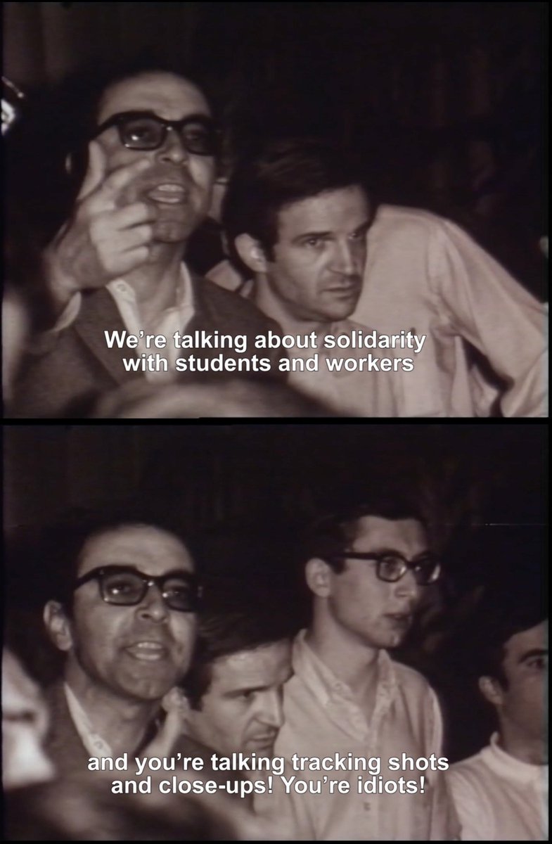 Τον Μάιο του ‘68 ο Γκοντάρ υπήρξε βασικό κομμάτι των συζητήσεων που οδήγησαν στην ακύρωση του φεστιβάλ Καννών εκείνης της χρονιάς, σε ένδειξη συμπαράστασης στους εργάτες και τους φοιτητές. Τα χρόνια που ακολούθησαν είδαν τον Γκοντάρ να ριζοσπαστικοποιείται περαιτέρω, εγκαταλείποντας το mainstream σινεμά σε μια απόπειρα έρθει σε ρήξη με την ίδια τη λατρεία που είχε στηθεί γύρω από την προσωπικότητά του όλα αυτά τα χρόνια. Με ένα γκρουπ μαοϊστών κινηματογραφιστών, ο Γκοντάρ συν-ιδρύει την κολεκτίβα Dziga-Vertov όπου τα φιλμ δημιουργούνται συνεργατικά, αποτελούν «πολιτικά φιλμ γυρισμένα με πολιτικό τρόπο».