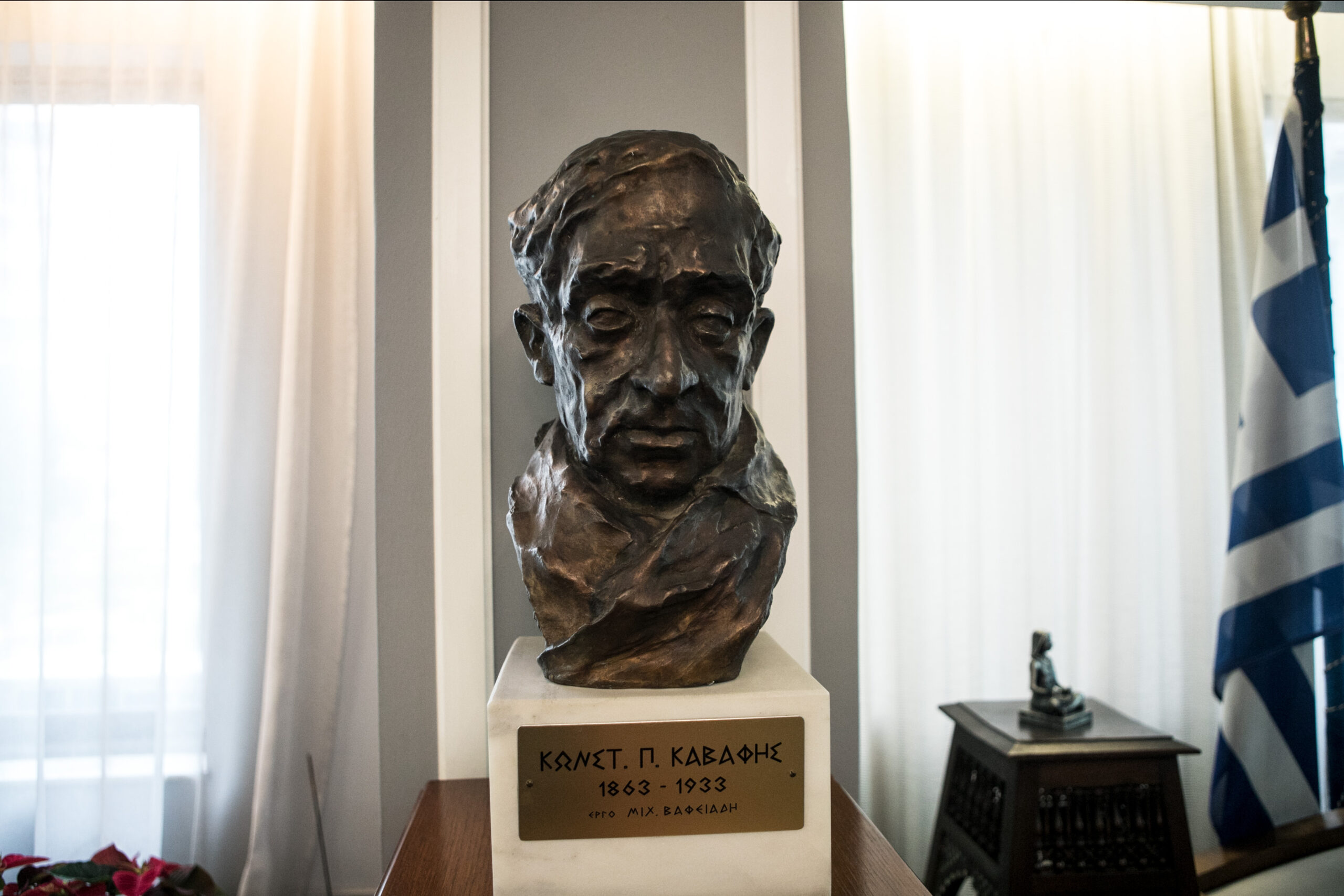 Ήδη από την είσοδό σου στον χώρου του Συνδέσμου, αισθάνεσαι την βαθιά σύνδεση της Ελλάδας με την Αίγυπτο. Η προτομή του Κωνσταντίνου Καβάφη, του μεγάλου Έλληνα ποιητή που γεννήθηκε και έζησε στην Αλεξάνδρεια, σε καλωσορίζει στο σαλόνι του Συλλόγου, μαζί με τις σημαίες των δύο χωρών που δεσπόζουν πίσω από τον μεγάλο καναπέ, αλλά και την πλούσια βιβλιοθήκη που περιλαμβάνει ξένη και ελληνική λογοτεχνία, Αιγυπτιώτες συγγραφείς, Έλληνες συγγραφείς που γράφουν για την Αίγυπτο, ποίηση και λευκώματα.