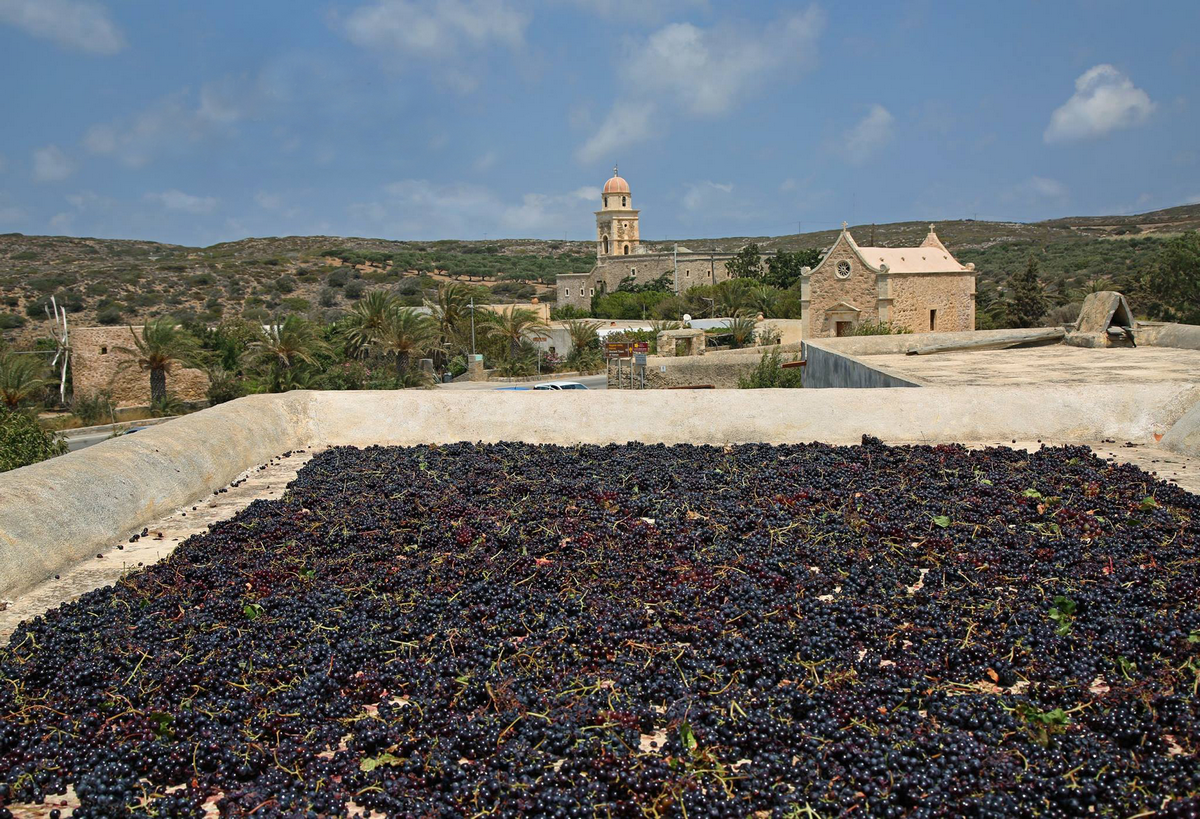 Πατέρας Φιλόθεος: «Το μοναστήρι ήταν ερειπωμένο, ο τότε ηγούμενος Ιάκωβος ξεκινά να φυτεύει αμπέλια σουλτανιά κάτω στο Βάι. Νοικιάσαμε χωράφια σε βοσκούς με αντάλλαγμα κάποια ζώα, ώστε να μπορέσει το μοναστήρι να αποκτήσει πάλι το δικό του κοπάδι. Το 1963 φυτέψαμε κριθάρι και το 1963 αγοράσαμε ένα τρακτέρ.