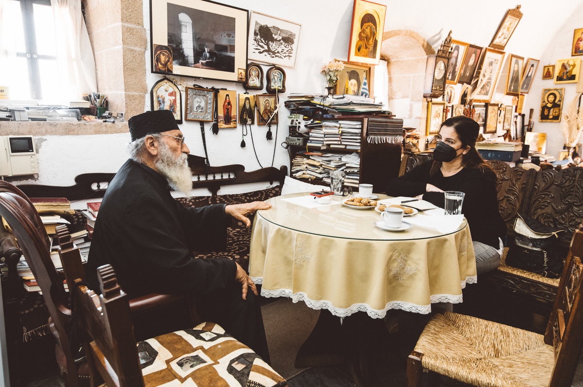Μας εξιστόρησε τη ζωή του απ’ το ξεκίνημα της. Μας είπε πως γεννήθηκαν και πως κατάφεραν φτάσουν τα προϊόντα της Μονής Τοπλού στα πέρατα της γης, το χρυσό της λάδι, το νόστιμο κρασί.