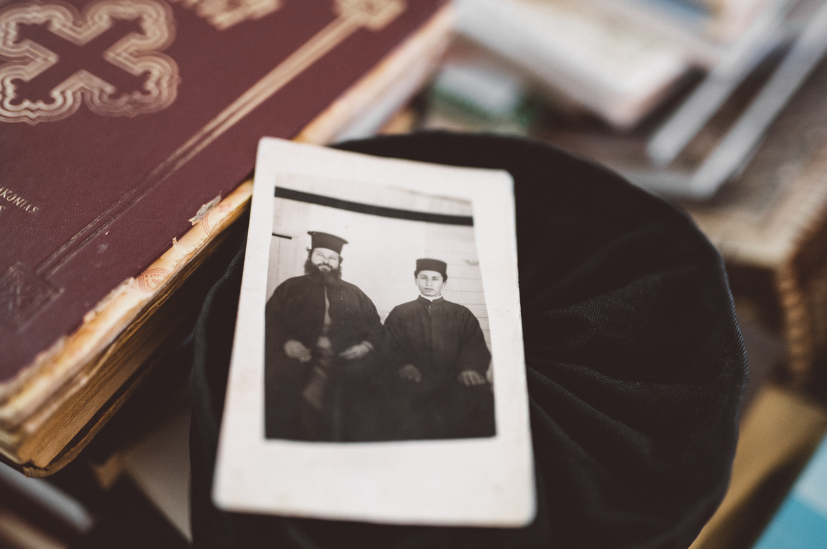 (σ.σ. ο πατέρας Φιλόθεος σηκώνεται από την καρέκλα του και πάει στην κρεμάστρα που είχε το ράσο του. Από το πορτοφόλι βγάζει μια φωτογραφία). «Αυτή η φωτογραφία είναι από την ημέρα που με έκαναν καλόγερο, αυτό έγινε μέσα σε ένα μήνα ενώ η δοκιμασία για να γίνεις καλόγερος είναι τρία χρόνια. Όμως φοβήθηκαν, γιατί έπρεπε να πάω φαντάρος και ίσως φύγω».