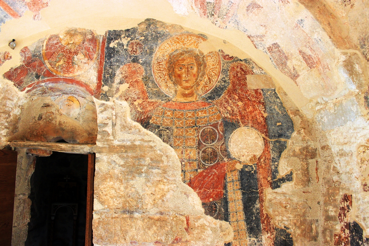 Στα τρία μόλις χιλιόμετρα ανατολικά από το Κάστρο του Λεύκτρου εντοπίζεται, ολίγον τι κρυμμένη από τη βλάστηση, αφιερωμένη στον Άη Στράτηγα, μια εντυπωσιακή βυζαντινή εκκλησία του β’ μισού του 12 αιώνος με στοά, στης οποίας (στοάς) τον θόλο, συναντούμε μια πολύ σπάνια τοιχογραφία: