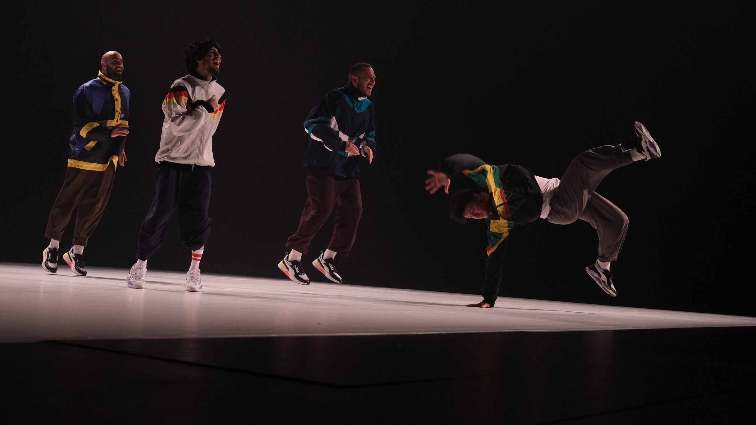 Στην χορευτική αυτή παράσταση τέσσερις άνδρες — νέοι, ωραίοι και δυνατοί, βίαιοι, ανώριμοι και αφελείς, παγιδευμένοι μέσα στην ταυτότητα που τους έχει δοθεί — μπαίνουν σε μια παλμική τροχιά που τους οδηγεί σε αχαρτογράφητα νερά. Από τα decks του DJ, ένας πέμπτος άνδρας ορίζει τον ρυθμό, ενώ ταυτόχρονα παρασύρεται από τον δικό τους.