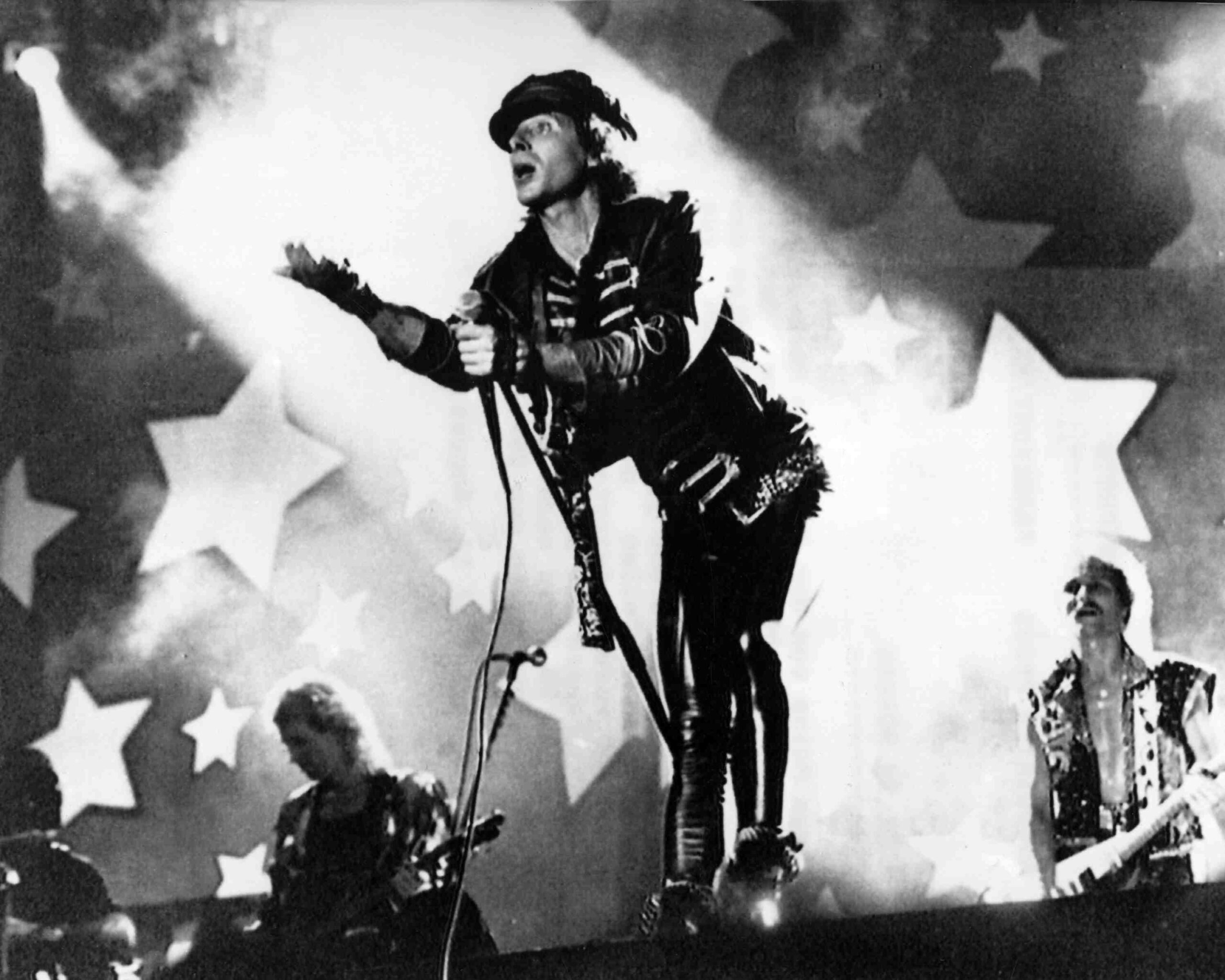 O Klaus Meine στις 13 Αυγούστου του 1989 στο Στάδιο Lenin στη Μόσχα. Στο βάθος δεξιά ο κιθαρίστας Rudolf Schenker. AP Photo