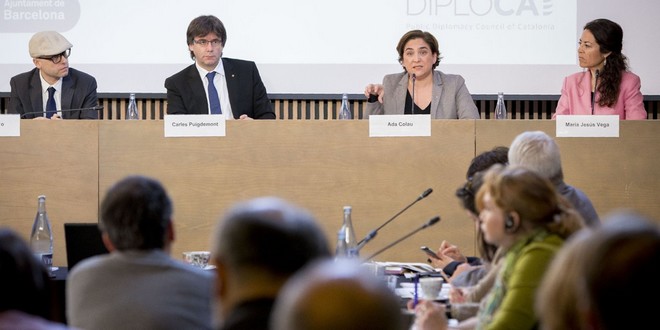 Στην κεντρική φωτογραφία: Ο Αλμπέρτο Ρόγιο (αριστερά) με τον καταλανό πρόεδρο και τον υπουργό Εξωτερικών της Καταλονίας Ραούλ Ρομέβα.