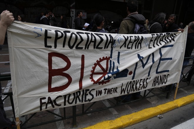 Το εργοστάσιο της ΒΙΟ.ΜΕ. λειτουργεί κάτω από εργατικό έλεγχο της παραγωγής και αυτοδιεύθυνση μέσα από την συνέλευσή του.