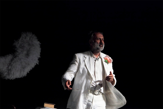– Από τι ξεκίνημα της επαγγελματικής πορείας μου ως ηθοποιός και ειδικά μετά την πρώτη δεκαπενταετία, το κριτήριο για την επιλογή του έργου που θέλω να ανεβάσω στη σκηνή, δεν είναι η στενή καριερίστικη νοοτροπία, η επίδειξη των προσόντων μου, η φήμη, τα χρήματα κι άλλα παρόμοια, αλλά το κατά πόσο ένα έργο μου προκαλεί εσωτερικές δονήσεις που με ωθούν να εκφραστώ μέσα από αυτό και που ταυτόχρονα η αλήθεια του αφορά και τον κόσμο που θα το δει. Όταν δηλαδή ένα έργο μου δίνει την αδιαμφισβήτητη πεποίθηση, ότι μέσα από αυτό θα μπορέσω να εκφράσω τις προσωπικές και καλλιτεχνικές ανάγκες μου, επιτρέποντας μου να βιώσω την μοναδική εμπειρία, του να γίνομαι χρήσιμος σε μένα και στον κόσμο με τον οποίο θα το μοιραστώ τότε αναλαμβάνω το ρίσκο να το κάνω παράσταση! Το συγκεκριμένο έργο με έκανε να νιώσω μια βαθιά κι έντονη επιθυμία να το παρουσιάσω από σκηνής, αφού πληρούσε τις προδιαγραφές που ανέφερα πριν αλλά και γιατί επιπροσθέτως απαντούσε στα καίρια υπαρξιακά μου ερωτήματα, δίνοντας μάλιστα προοπτική λύτρωσης. Όντας επίσης σίγουρος πως αυτό θα αφορούσε και τον κόσμο, το αποτόλμησα, αφού πρώτα περίμενα την κατάλληλη στιγμή. Νιώθω απόλυτα δικαιωμένος για την επιλογή μου αυτή αφού οι θεατές, εκδηλώνονται με ενθουσιώδη και συγκινητικό τρόπο όχι μόνο για το καλλιτεχνικό αποτέλεσμα αλλά και για την επίτευξη του σκοπού που κάνουμε θέατρο, που είναι να γινόμαστε καλύτεροι άνθρωποι μέσω της τέχνης.