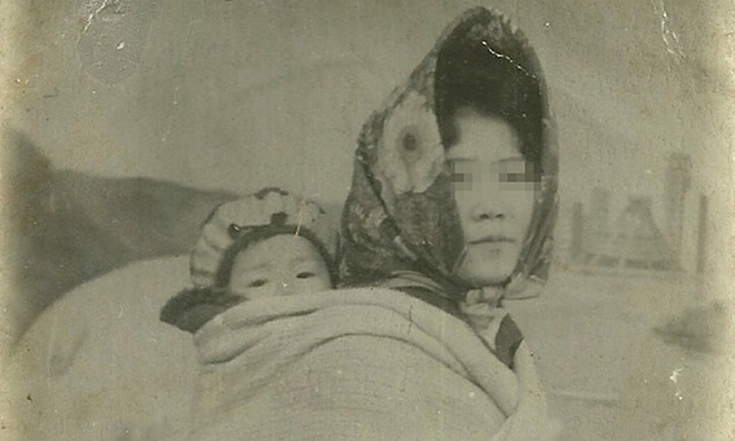 (Η μητέρα της Hyeonseo Lee κουβαλά στην πλάτη την κόρη της, όταν ήταν μόλις 3 ετών)