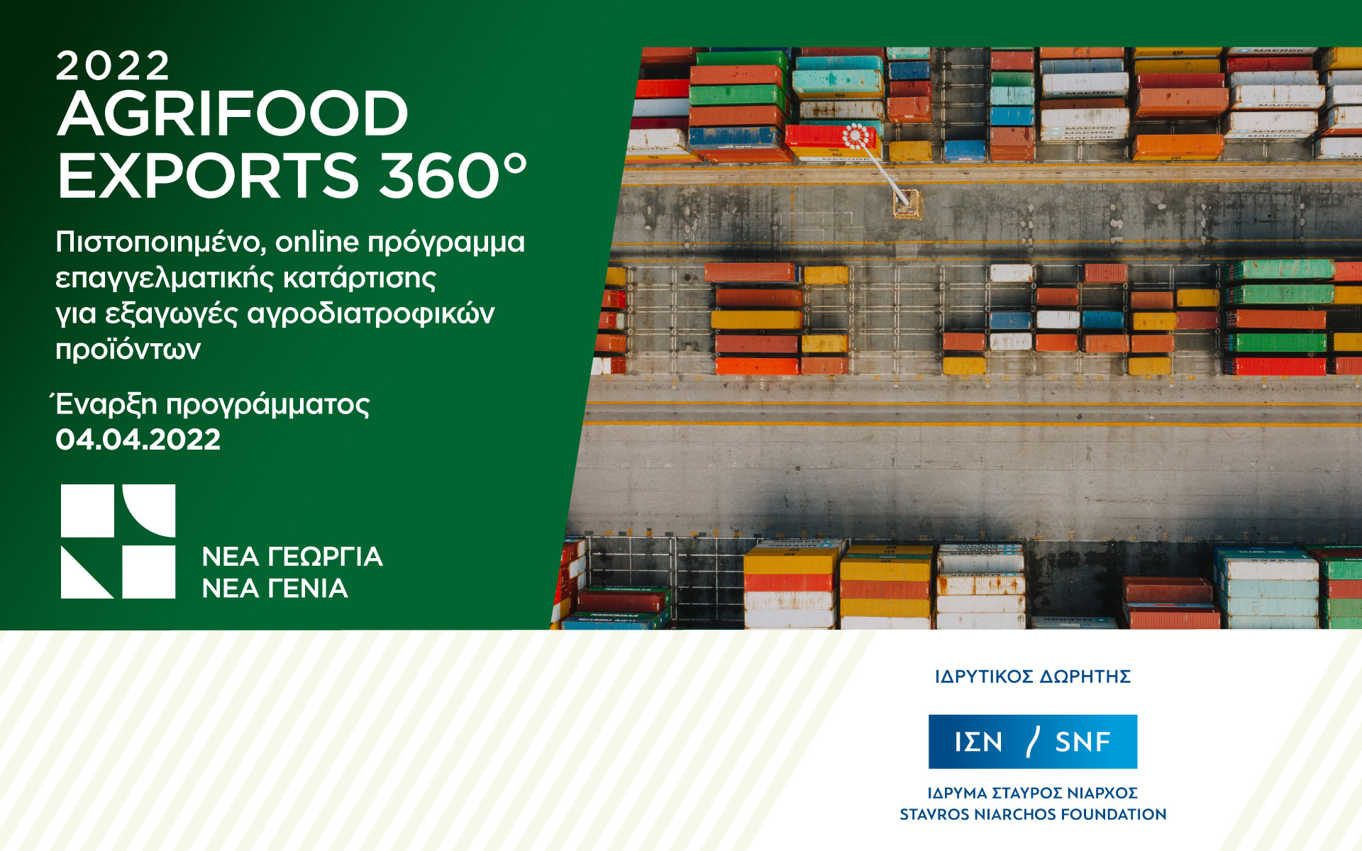 Το “Agrifood Exports 360°” είναι μάλιστα το πρώτο εξειδικευμένο και πιστοποιημένο πρόγραμμα επαγγελματικής κατάρτισης στην Ελλάδα για εξαγωγές αγροδιατροφικών προϊόντων. Σκοπός του προγράμματος είναι να στηρίξει και να βοηθήσει τους νέους στον κλάδο της αγροδιατροφής.