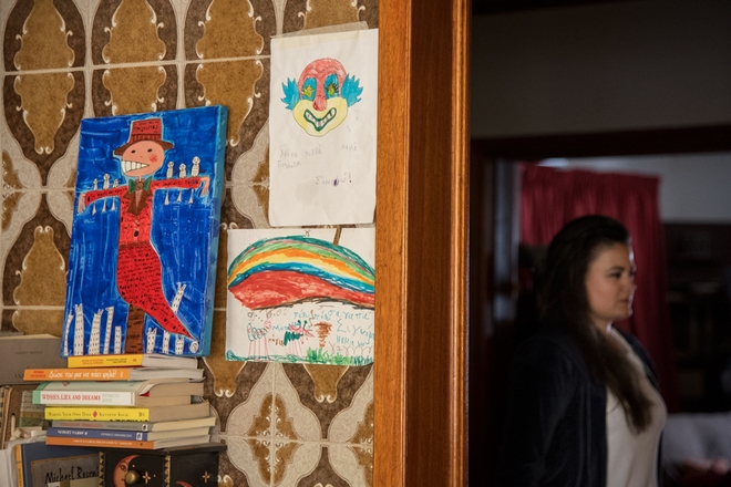 “Ξέρεις, κανονικά δεν θα έπρεπε να σηκώνουμε το βλέμμα μας στιγμή. Όχι μόνο από τα νεκρά παιδιά αλλά και από τα δυστυχισμένα παιδιά που είναι στα κέντρα υποδοχής. Έχω βρεθεί πολλές φορές εδώ στο Σχιστό και έχω δει τις ζωγραφιές των παιδιών από τη Συρία και από άλλα μέρη που ζουν μέσα στα κέντρα. Ζωγραφίζουν θάλασσες με καρχαρίες που καταβροχθίζουν κόσμο, γράφουν μηνύματα για τις μητέρες τους που τους λείπουν. Τα παιδιά δεν τα ρωτάει κανείς, απλά ακολουθούν, και φυσικά υπάρχουν και τα ασυνόδευτα. Από την άλλη, η Ύπατη Αρμοστεία τους εξηγεί με όρους τεχνικούς που δεν καταλαβαίνουν, το τί πρέπει να κάνουν από εδώ και πέρα για να έχουν άσυλο και λύση. Δεν μιλάνε όμως τη γλώσσα των παιδιών”.