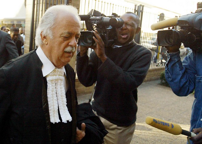 Legal advisor to former President Nelson Mandela, George Bizos, arrives at the High Court in Johannesburg, Tuesday May 31, 2005. A judge ordered art dealer Ross Calder, and Mandela's former lawyer, Ismail Ayob, to stop selling artworks bearing Mandela's signature. (AP Photo) ASSOCIATED PRESS