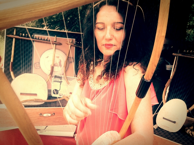 Η Λίνα Παλερά, η βασική παίκτρια αρχαίας λύρας για το οργανοποιείο, λίγο πριν την εμφάνιση της στις εκδηλώσεις των Προμηθείων στους πρόποδες του Ολύμπου.