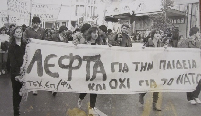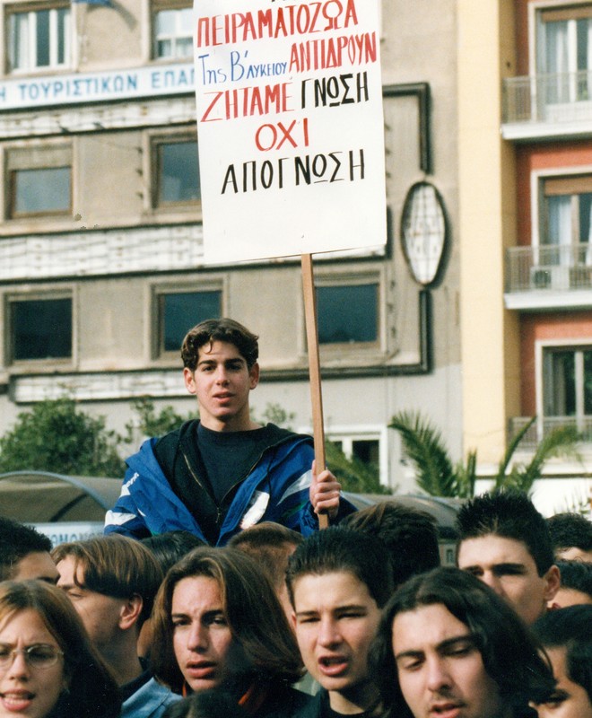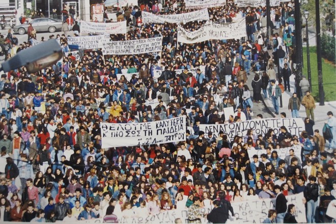 Βέβαια, στις λίστες με τα αιτήματα των μαθητών υπήρχαν και άλλου είδους –μη εκπαιδευτικά αλλά όχι ασήμαντα– αιτήματα, όπως ας πούμε η μη αποστολή στρατιωτικής δύναμης στον Περσικό Κόλπο το 1991, που κινείται στο ίδιο μήκος κύματος με την αγορά των Rafale. Δεν έλειπαν όμως και άλλα, που μόνο με χιούμορ μπορεί κανείς να τα αντιμετωπίσει, όπως το τι σχήμα θα έχουν οι τυρόπιτες του κυλικείου –το αντίστοιχο σημερινό είναι να μπει ο ΠΑΟΚ στο Champions League. Όπως γίνεται αντιληπτό, όλα αυτά τα δευτερεύοντα αιτήματα λειτουργούσαν συμπληρωματικά και εμφανίζονταν τις περισσότερες φορές όταν ουσιαστικά η κινητοποίηση είχε κλείσει τον κύκλο της ή αποσκοπούσε εξ αρχής στο χάσιμο μαθήματος’.