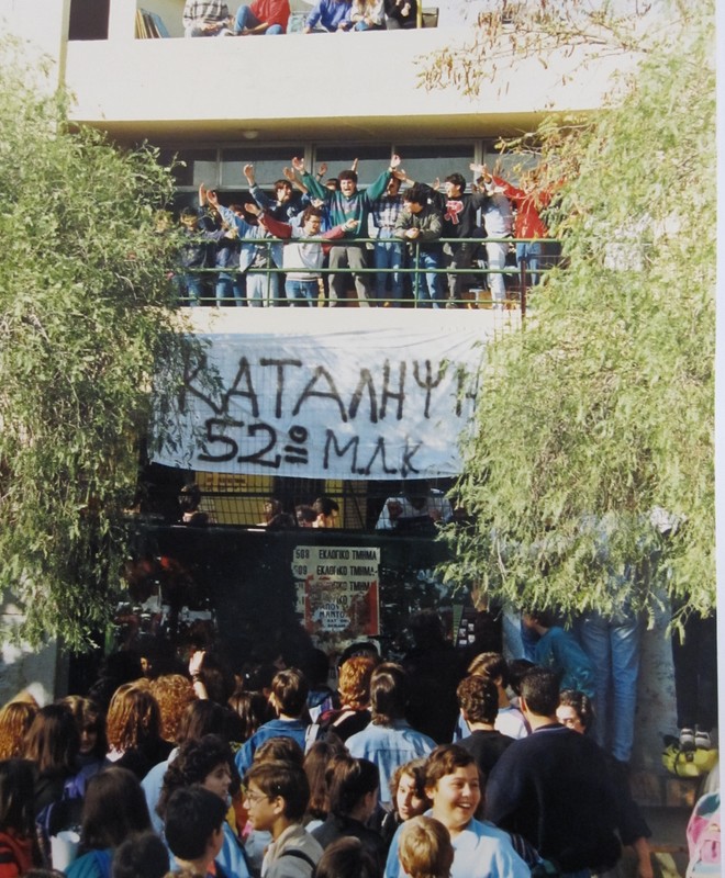 Όσο για την περίοδο 1998-1999, το μαθητικό τμήμα της ΚΝΕ δημιούργησε το «Συντονιστικό Αγώνα Σχολείων Αθήνας», το οποίο ηγήθηκε των μαθητικών κινητοποιήσεων, ενώ δημιουργήθηκε και ένα ακόμα συντονιστικό με την ονομασία «Πρωτοβουλία Μαθητών Κατειλημμένων Σχολείων» από αριστεριστές και αναρχικούς μαθητές, οι οποίοι αντιδρούσαν στο «καπέλωμα» της ΚΝΕ. Σήμερα το αποτύπωμα των κομμάτων στα σχολεία είναι πολύ πιο ισχνό. Απ’ όσο γνωρίζω μαθητές προσκείμενοι στην ΑΝΤΑΡΣΥΑ, το ΚΚΕ και από το χώρο της αναρχίας στηρίζουν τις καταλήψεις”.