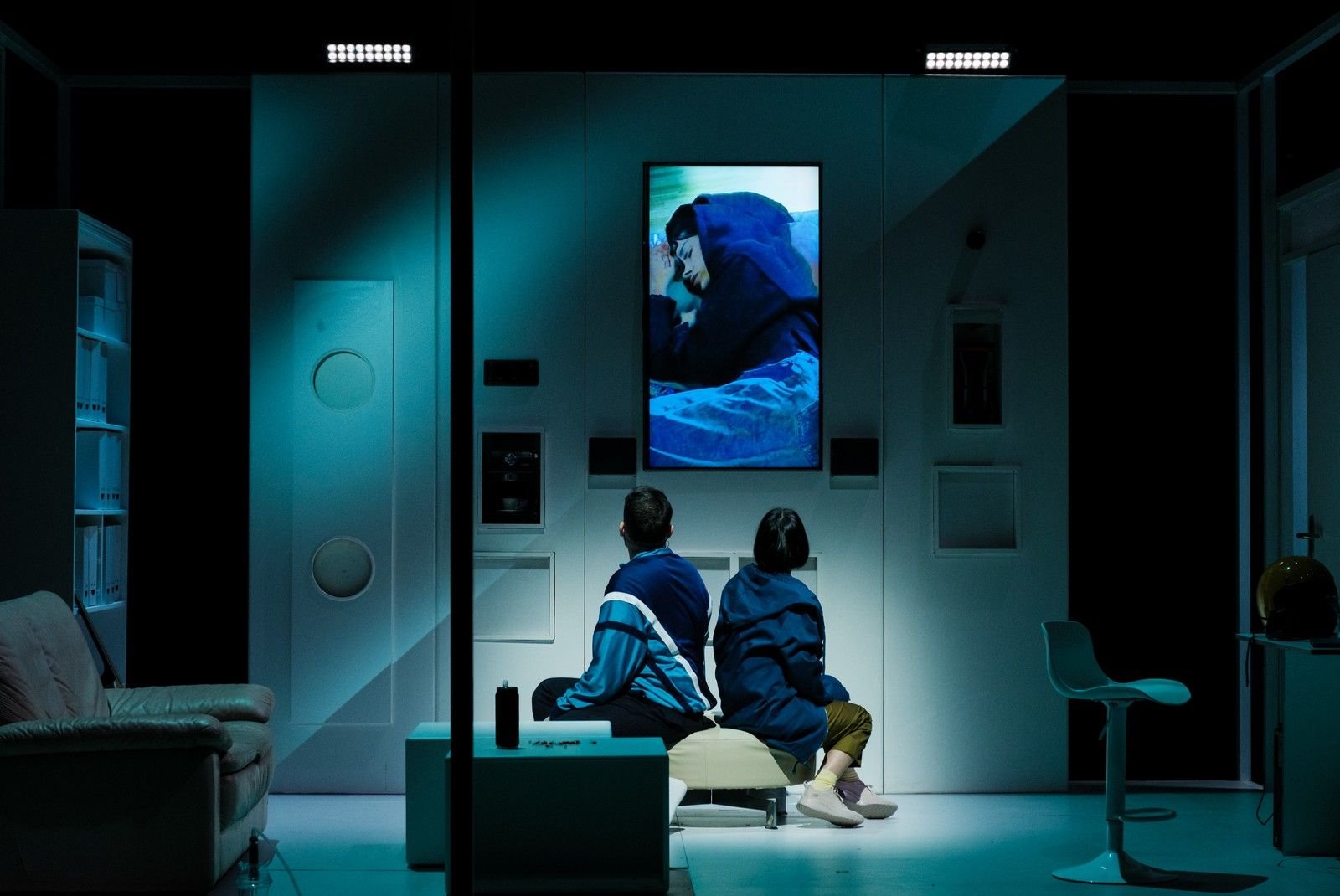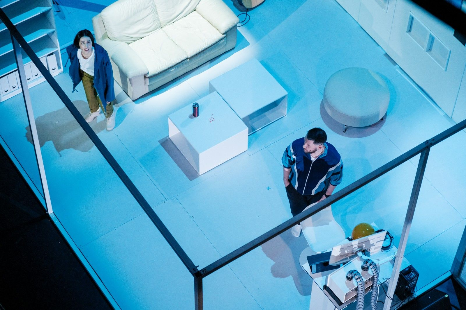 Η φράση του «στο διαμέρισμα των Κοινών, όλοι βλέπουμε την πόρτα εξόδου» περιγράφει με ακρίβεια το υπαρξιακό αδιέξοδο των χαρακτήρων του έργου, αλλά ίσως και της γενιάς μας. Η μουσική του, γεμάτη σπειροειδείς συγχορδίες, υβριδικά στυλ και ήχους που μοιάζουν να έρχονται από το μέλλον, υποστηρίζει αυτήν την αστική ασφυξία. Το ίδιο και το τζαζ σύνολο επί σκηνής, που θυμίζει lounge μπάντα σε μετα-αποκαλυπτικό σαλόνι.