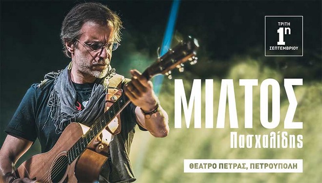 *Η συναυλία του Μίλτου Πασχαλίδη θα πραγματοποιηθεί την Τρίτη 1η Σεπτεμβρίου 2020 στο Θέατρο Πέτρας στην Πετρούπολη στις 21:30. Περισσότερες πληροφορίες και εισιτήρια εδώ*
