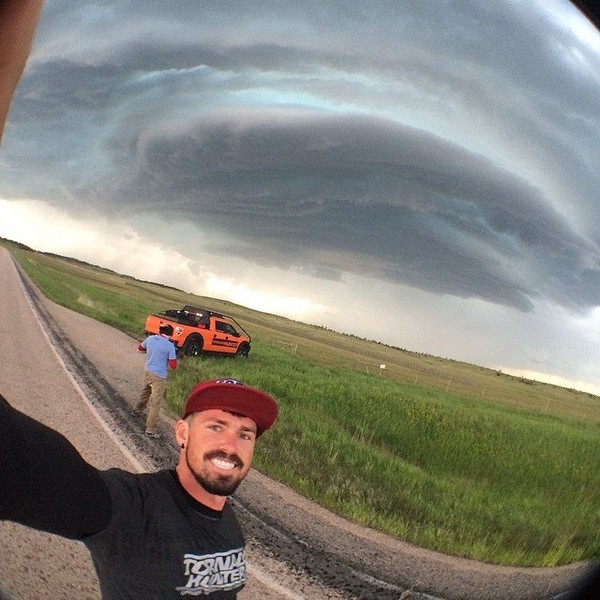 “Ο Greg είναι ο φωτογράφος μας. Κάθεται στο μπροστινό κάθισμα και προβλέπει τους ανεμοστρόβιλους. Και όταν έρθει η ώρα, την κατάλληλη στιγμή κρέμεται από το παράθυρο και προσπαθεί να τραβήξει τις καλύτερες φωτογραφίες, ενώ κατευθυνόμαστε στο μάτι του κυκλώνα”. Ο Greg κυνηγά ανεμοστρόβιλους για πάνω από μια δεκαετία και έχει δει πάνω από 150.