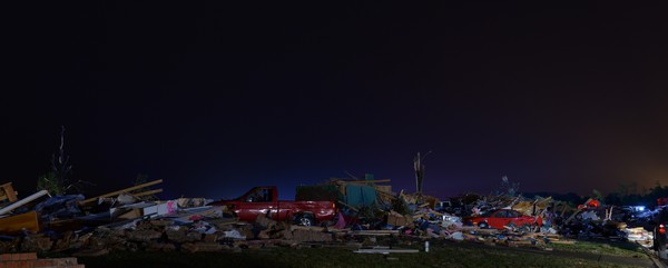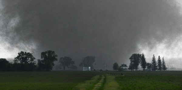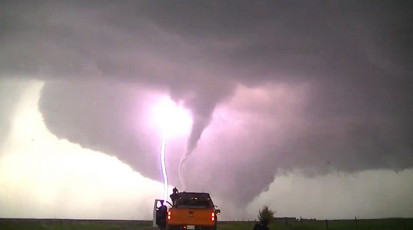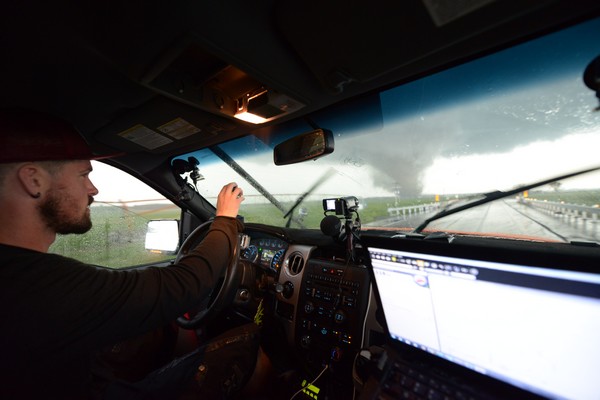 Τότε, η ομάδα πλησίασε πάρα πολύ κοντά έναν ανεμοστρόβιλο με αποτέλεσμα να εγκλωβιστεί. “Ο ανεμοστρόβιλος, ο οποίος ήταν πάνω από 4 χιλιόμετρα, άρχισε να επεκτείνεται και δεν μπορούσαμε να φύγουμε γρήγορα. Το αυτοκίνητό μας σηκώθηκε στον αέρα, κτίρια πετούσαν παραδίπλα, ήταν τρομακτικό, δεν ξέραμε αν θα γλιτώσουμε”, αναφέρει, προσθέτοντας πως ευτυχώς κανείς από την ομάδα δεν έχει τραυματιστεί.