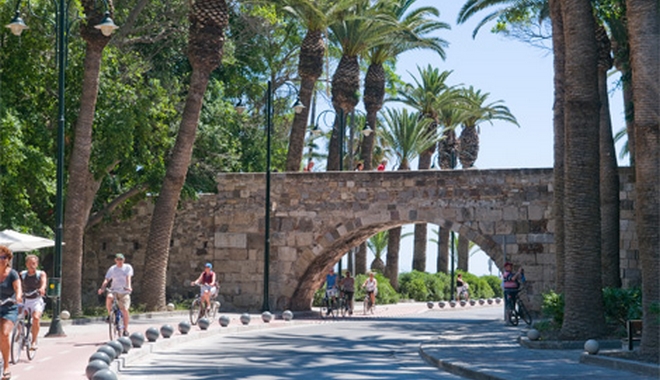 Ένα από τα πλέον αξιοσημείωτα χαρακτηριστικά της πόλης είναι οι ατελείωτοι ποδηλατόδρομοι που υπάρχουν κατά μήκος των παραλιακών οδών, αλλά και στο κέντρο της πόλης. Αποτελεί ένα αγαπημένο μεταφορικό μέσο των κατοίκων, καθώς και των επισκεπτών, αφού με το ποδήλατο μπορεί κανείς να μεταφερθεί άνετα, γρήγορα, ευέλικτα και, παράλληλα, να γνωρίσει καλύτερα το νησί, βλέποντας τις ομορφιές της Κω και τα αξιοθέατά της χωρίς να τον πονέσουν τα πόδια του από το περπάτημα! Η ποδηλασία είναι από μόνη της μια ωραία και διαφορετική εμπειρία, πόσω μάλλον όταν βολτάρεις κάτω από γέφυρες, πλάι στους φοίνικες και μέσα από κάστρα.