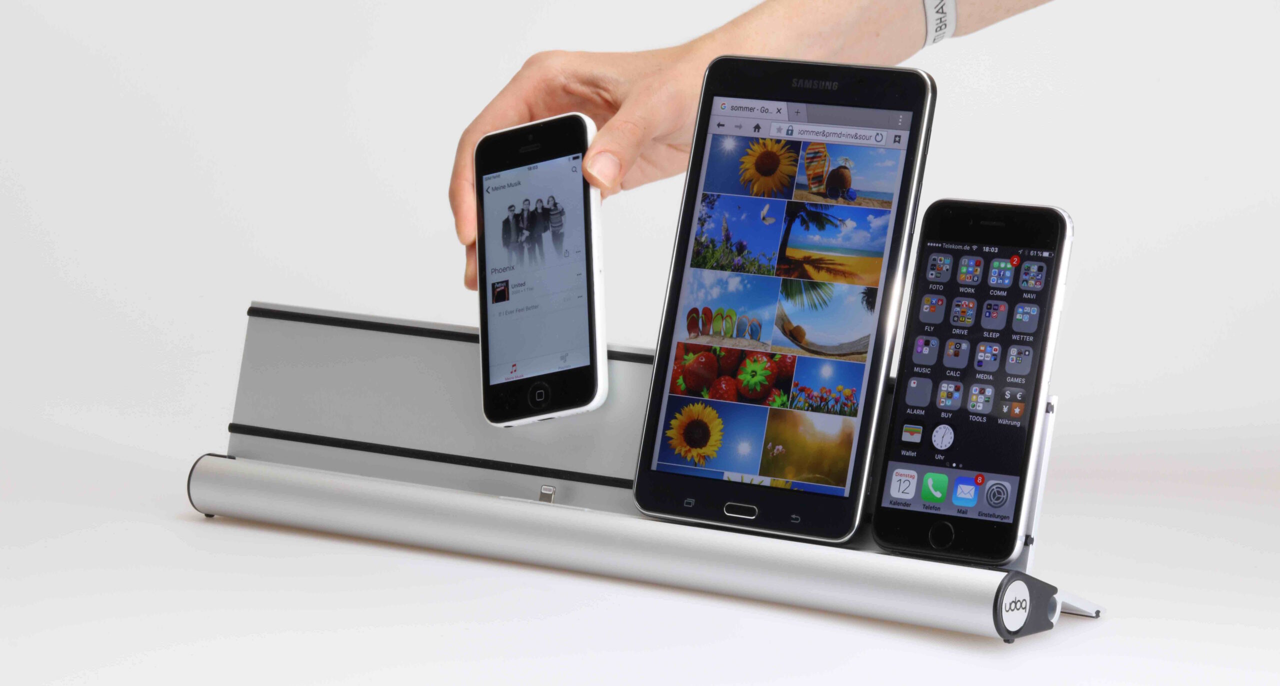 9. Udoq universal docking station: Μια πρωτότυπη βάση σύνδεσης και φόρτισης διαφορετικών ειδών φορητών συσκευών. Ενσωματώνει τους τέσσερις πιο διαδεδομένους τύπους συνδέσεων (Apple Lightning, Apple 30-pin, micro-USB και USB-C), δίνοντας λύση στο πρόβλημα παράλληλης χρήσης διαφορετικών φορτιστών.