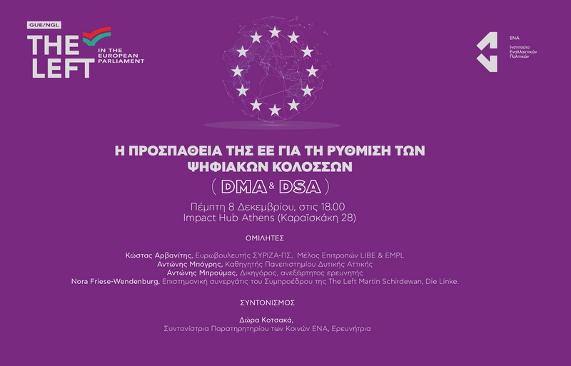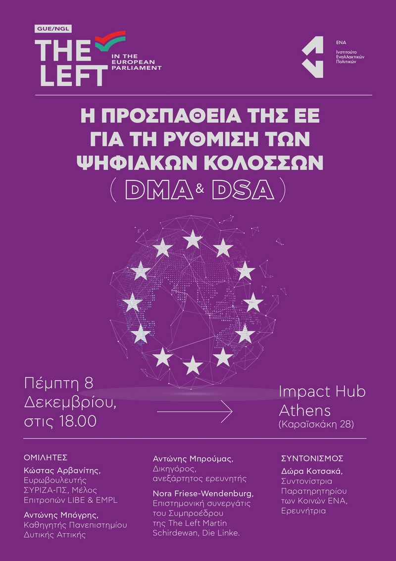 Εκδήλωση Τhe Left & ΕΝΑ: “DMA & DSA: Η προσπάθεια της ΕΕ για τη ρύθμιση των ψηφιακών κολοσσών”