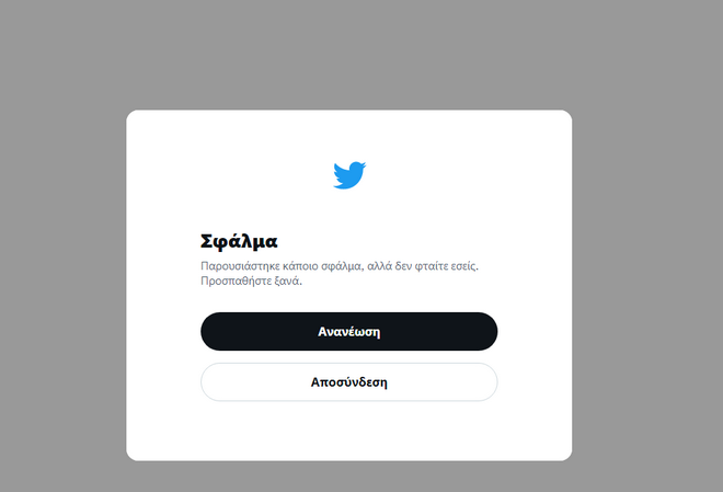 Προβλήματα στη λειτουργία του Twitter παρουσιάστηκαν λίγο μετά τις 3 μ.μ., καθώς στην προσπάθειά τους να συνδεθούν ή να ανανεώσουν τη ροή, οι χρήστες δεν μπορούσαν να μπουν στην πλατφόρμα.