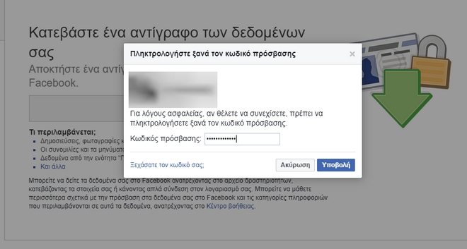Προκειμένου να προχωρήσει η διαδικασία θα χρειαστεί να εισαγάγετε και πάλι τον κωδικό εισόδου σας στο Facebook
