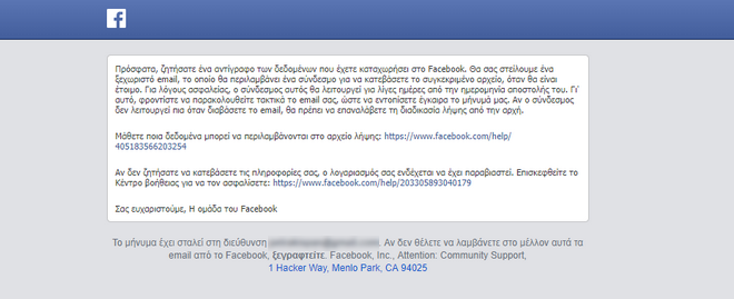 Θα λάβετε ένα mail το οποίο επιβεβαιώνει ότι έχετε ζητήσει λήψη των δεδομένων σας