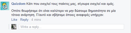 Σημειώνεται ότι το Quizdom είχε κάνει σχετική ανάρτηση στο Facebook αλλά την έσβησε.