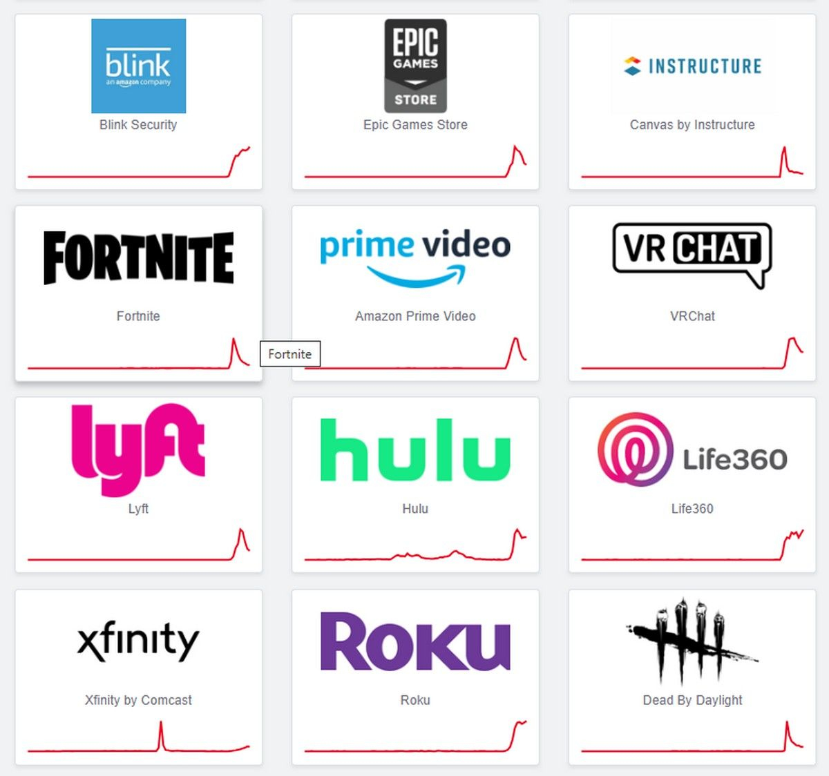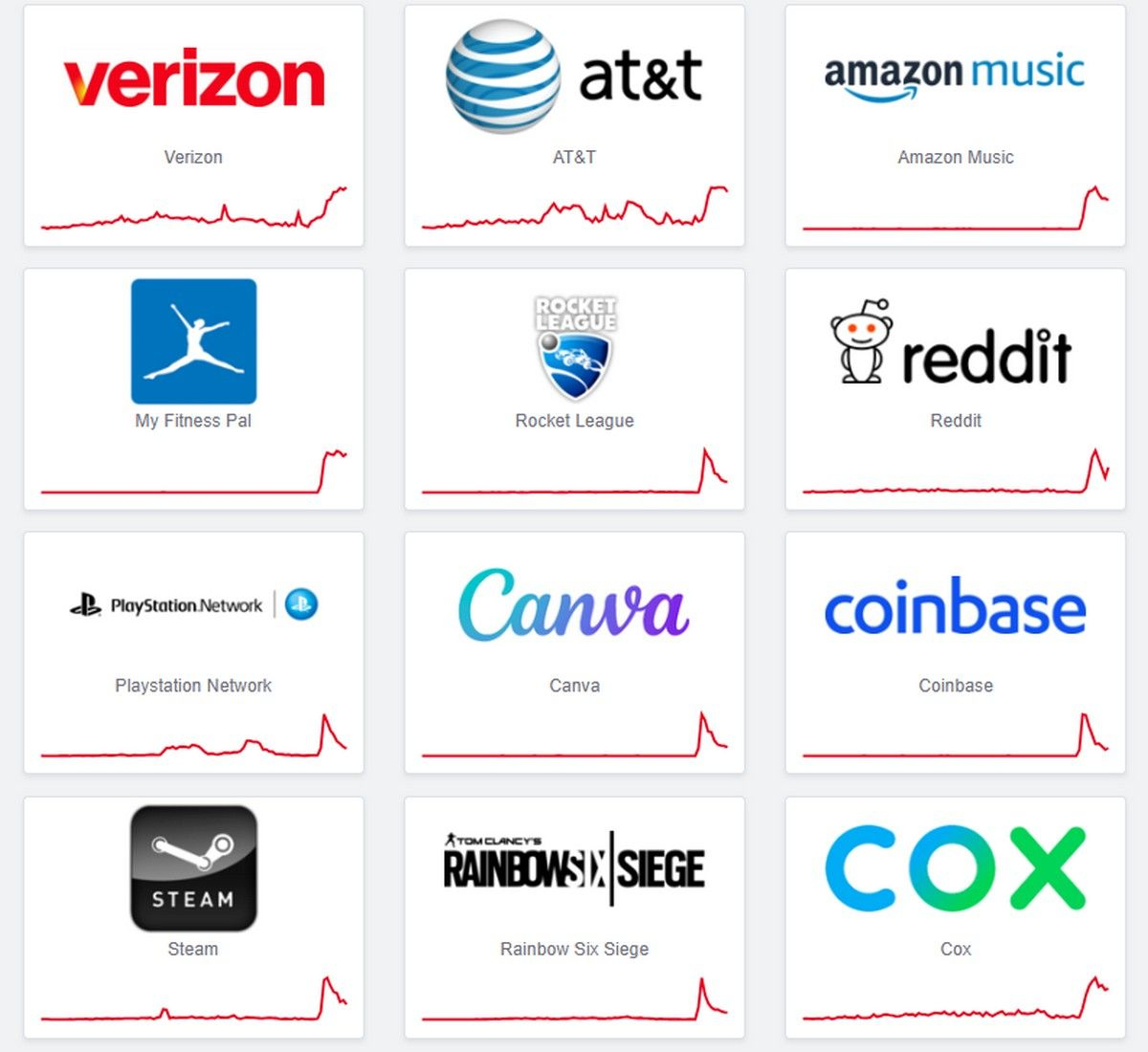 Snapchat, Ring, Roblox, Clash Royale, Life360, My Fitness Pal, Xero, Canva, Amazon, Amazon Web Services, Amazon Music, Prime Video, Clash of Clans, Fortnite, Wordle, Duolingo, Coinbase, HMRC, Vodafone, Playstation, Pokémon Go.