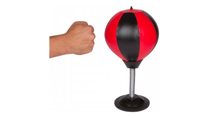 Αυτός ο επιτραπέζιος σάκος του μποξ μπορεί να τοποθετηθεί σε οποιαδήποτε επιφάνεια. Το ειδικό ελατήριο επαναφέρει τον σάκο κάθε φορά που τον χτυπάτε μέχρι να ηρεμήσετε.