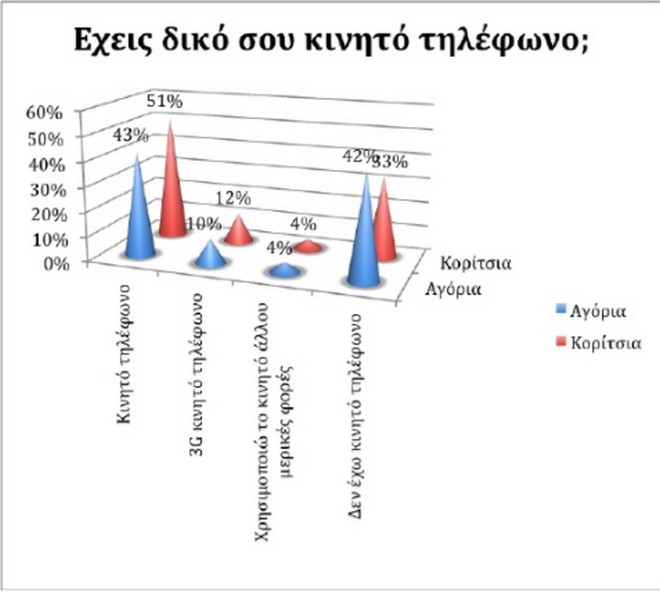 Σε δείγμα αγόρια-κορίτσια, 10-14 ετών (τα αγόρια προτιμούν ηλεκτρονικά παιχνίδια και διαδίκτυο από το κινητό τηλέφωνο).