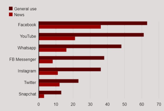 Το Instagram χρησιμοποιείται από περισσότερο από το ένα τρίτο των συμμετεχόντων στη μελέτη (και από τα δύο τρίτα όσων ήταν μικρότρεροι των 25 ετών). Το 11% του δείγμστος απάντησε ότι το χρησιμοποιεί για ενημέρωση, τοποθετώντας το μόλις μια βαθμίδα μετά το Twitter.